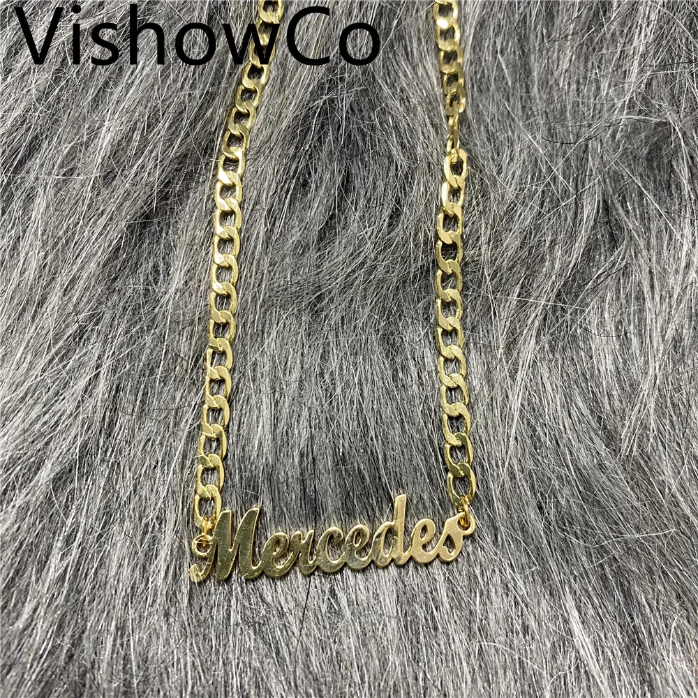 Ножные браслеты VishowCo на кубинской цепочке, ювелирные украшения из нержавеющей стали под заказ, ножные браслеты с именной табличкой, подарок на заказ