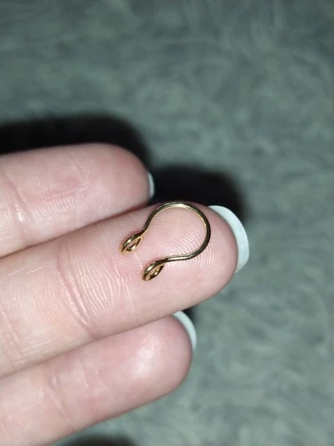 Хорошая маленькая сережка, как я и хотела. Можно глубже в нос прикреплять, тогда почти не видно и аккуратно. Спасибо продавцу. Думала, не дойдёт, потеряется, пришла за 2 месяца где-то в Ниж.обл