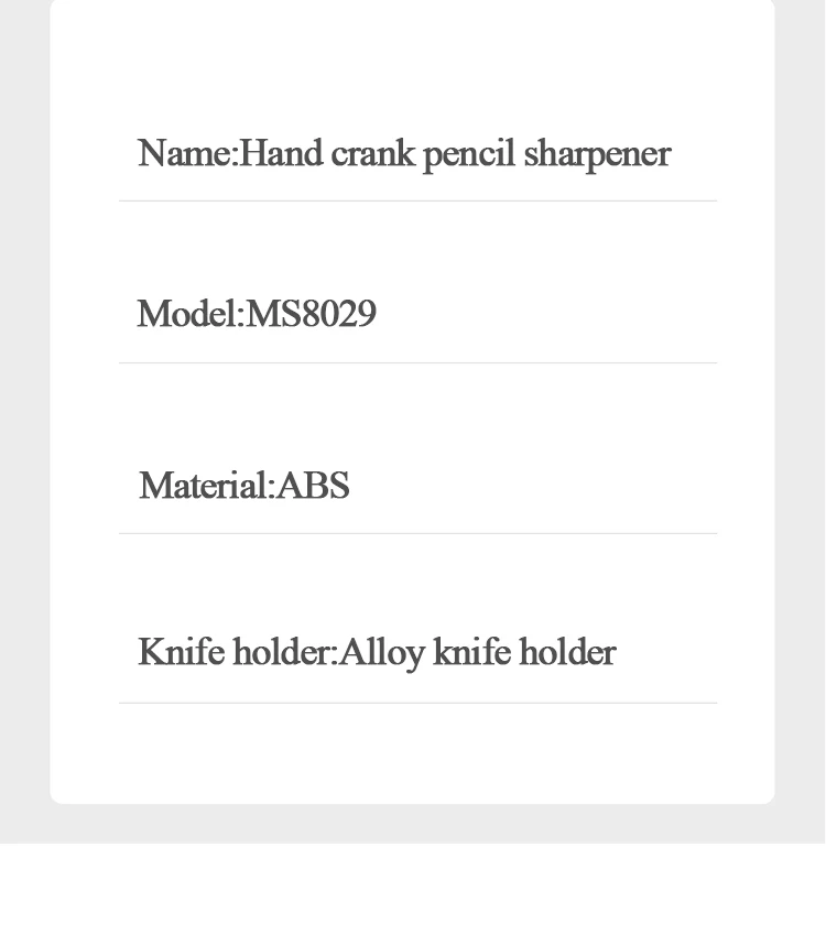 Точилка замечательная, соответствует заявленному описанию. Выбором точилки довольна. Что же касается дополнительной детали - запасной ручки. БУДЬТЕ ВНИМАТЕЛЬНЫ!!! К МОДЕЛИ 8029 НЕ ПОДХОДИТ, так как её невозможно поместить внутрь корпуса, в связи с тем, что вход точилки узкий. Эта ручка от модели 8019. Я связывалась с продавцом, надо заметить, отвечает быстро, и он заверил, что данная ручка универсальна. К сожалению это не так. Смешно было, когда потребовал видео с доказательствами, вместо того, чтобы взять товар и самому проверить... Разница визуально не заметна. В отзывах ниже, один из покупателей опубликовал замеры: весьма исчерпывающие данные, так как сделаны они электронным штангенциркулем. В заключении вывод такой: если Вас привлекла модель 8029 - берите её без дополнительной детали и у Вас не будет причин расстраиваться. А вот модель 8019 можно приобретать + дополнительное точило.