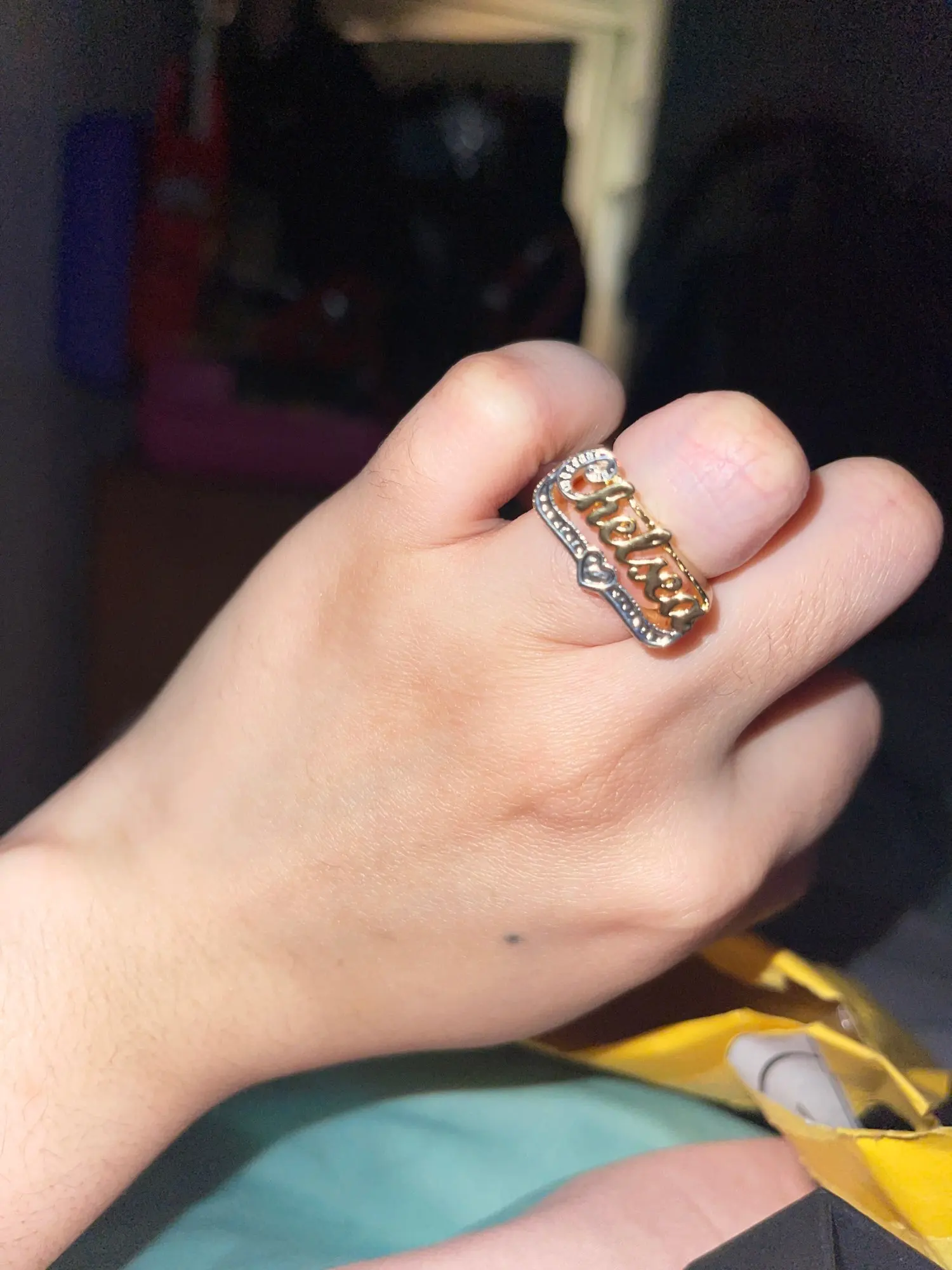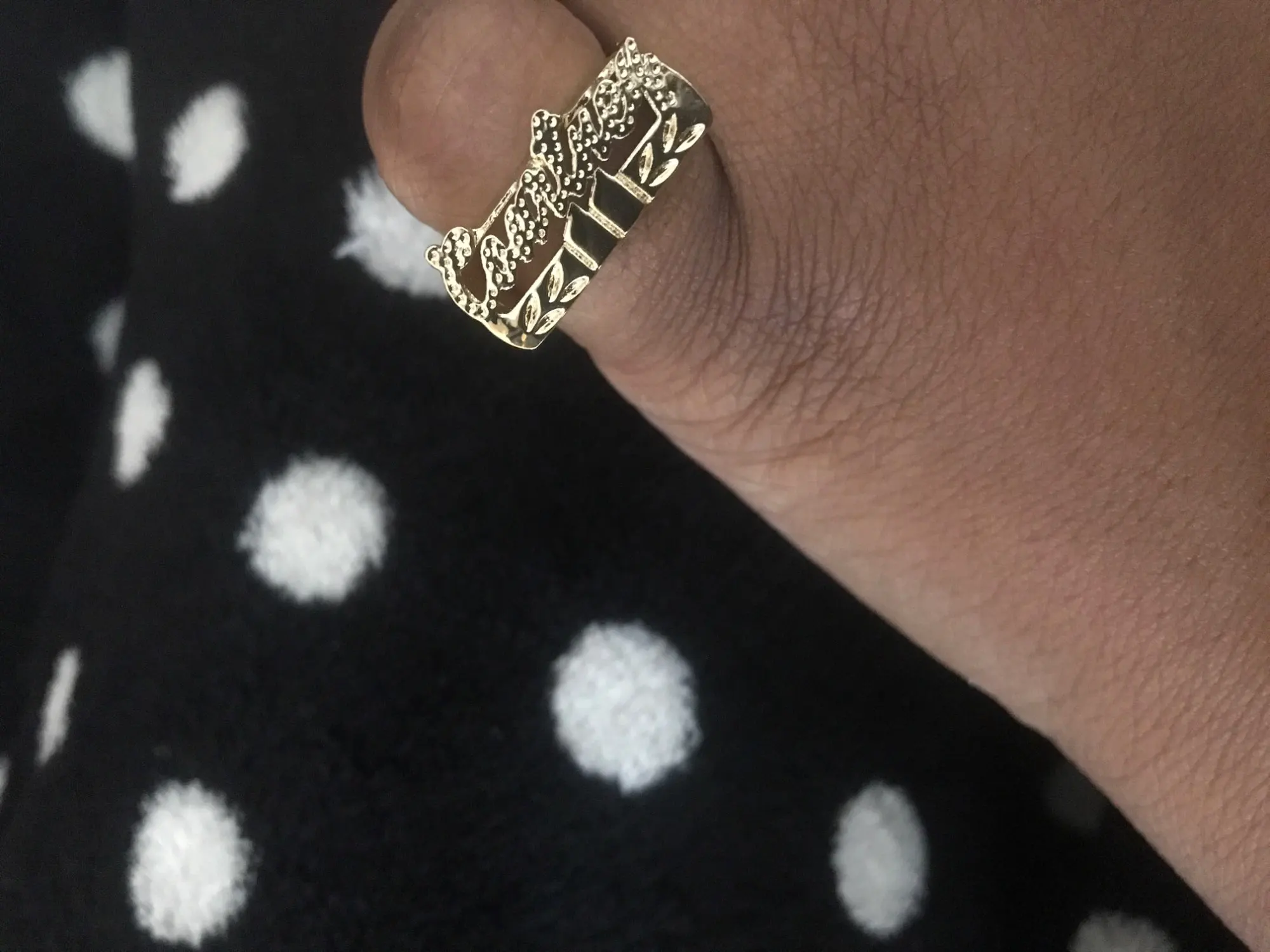 Я очень беспокоился об этом кольце, потому что было смешано с тем, что я на самом деле заказал и что было сделано. Продавец был очень любезен и готов исправить ошибку. Я просто не хотел ждать дольше, поэтому я сохранил то, что было сделано, и в итоге мне действительно понравилось, только жалоба-это «Т» вид выглядит как «Л», так как крест почти отсутствует. Так что это может быть просто шрифт. Но большое вам спасибо! Закажите у продавца еще один товар.