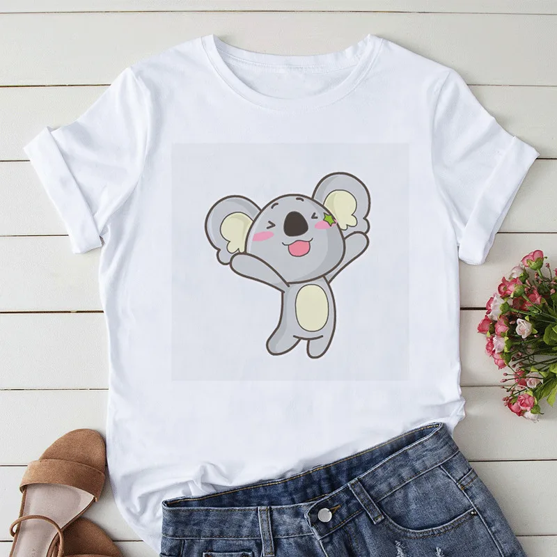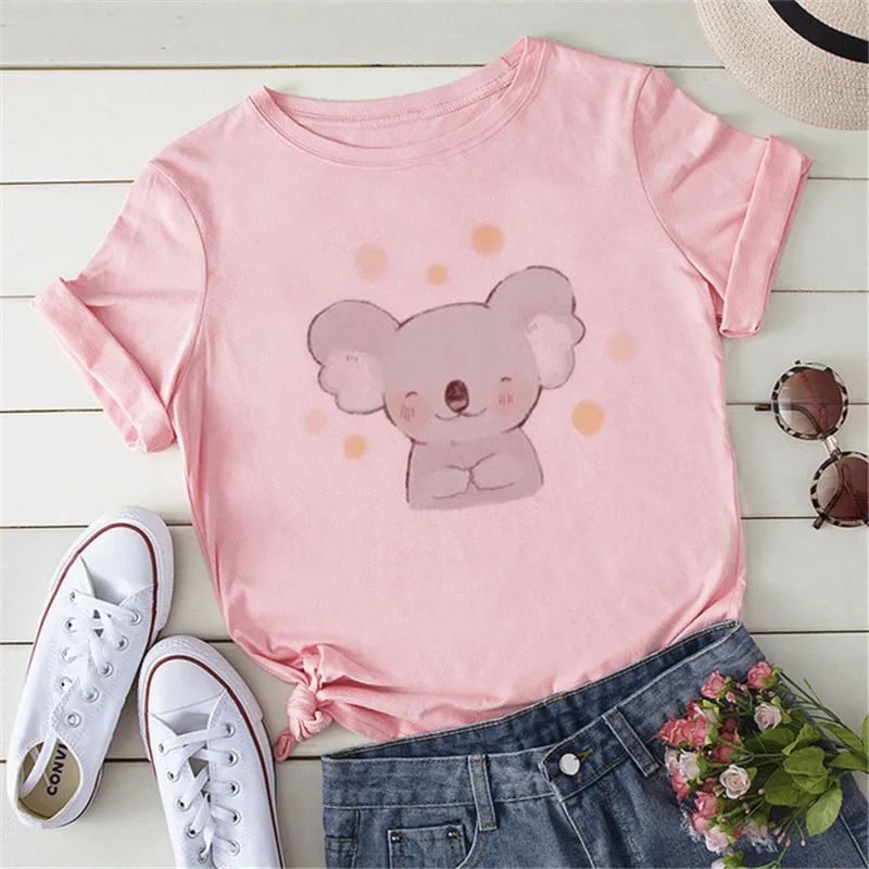 Новая модная женская футболка с мультяшным принтом коала, винтажная Милая Повседневная Свободная одежда, летние женские топы свободного кроя с круглым вырезом