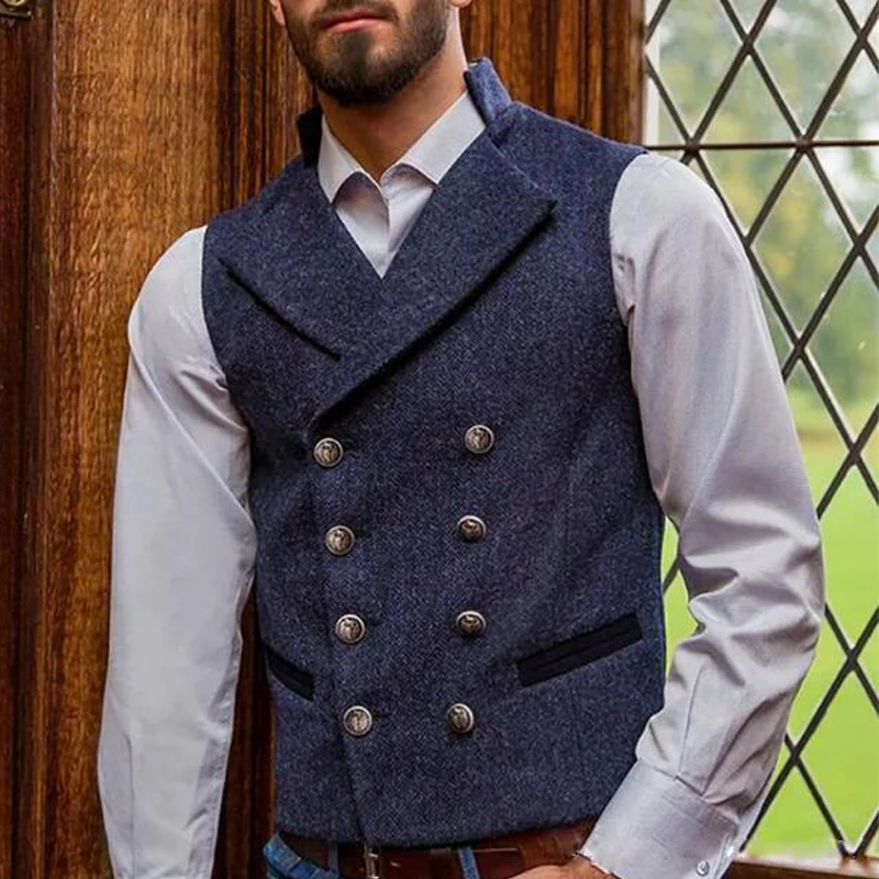 Рубашечный жилет для жениха, наряд для свадьбы, шафера, двубортный твидовый приталенный мужской костюм в елочку, жилет для выпускного вечера