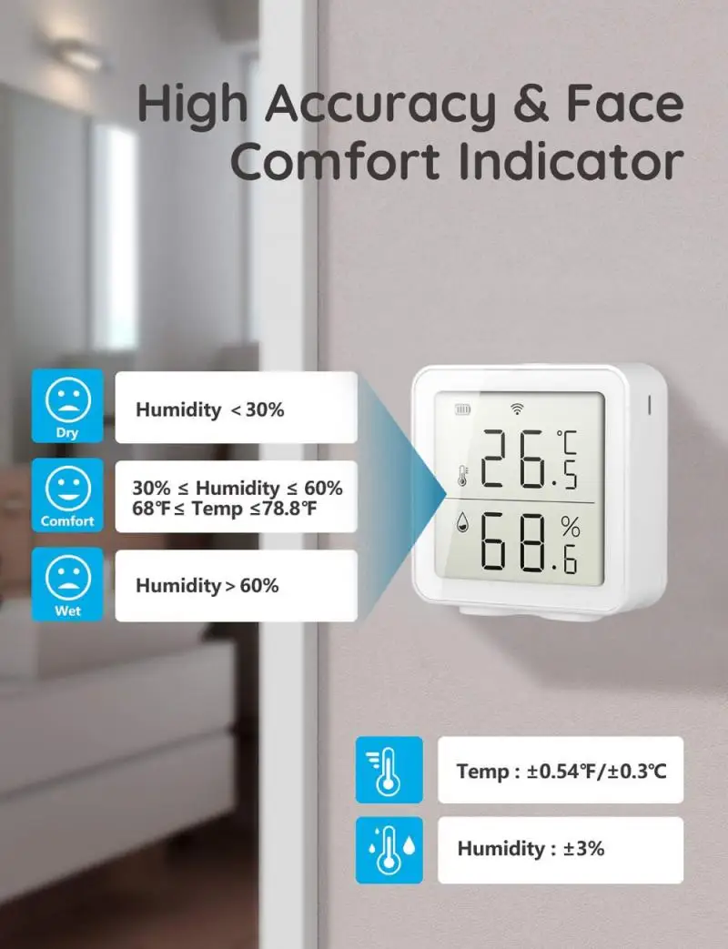 Датчик температуры и влажности Tuya Wi-Fi для умного дома, умное соединение с аномальным датчиком температуры и влажности, с Alexa, не требует шлюза