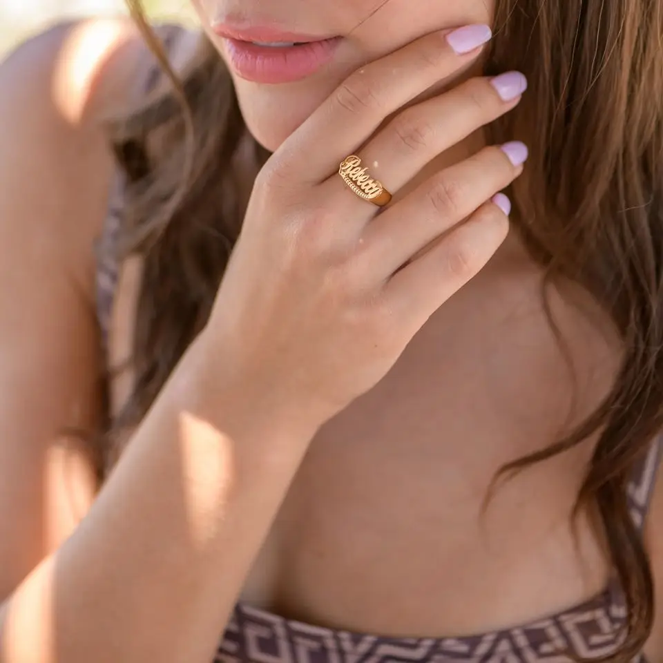 Женское кольцо с именем на заказ VishowCo, Золотое кольцо из нержав...