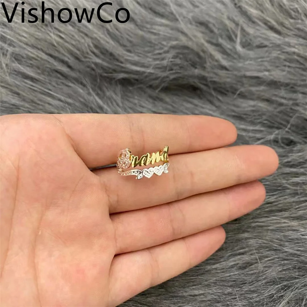 Женское кольцо с именем VishowCo, Золотое кольцо из нержавеющей ста...