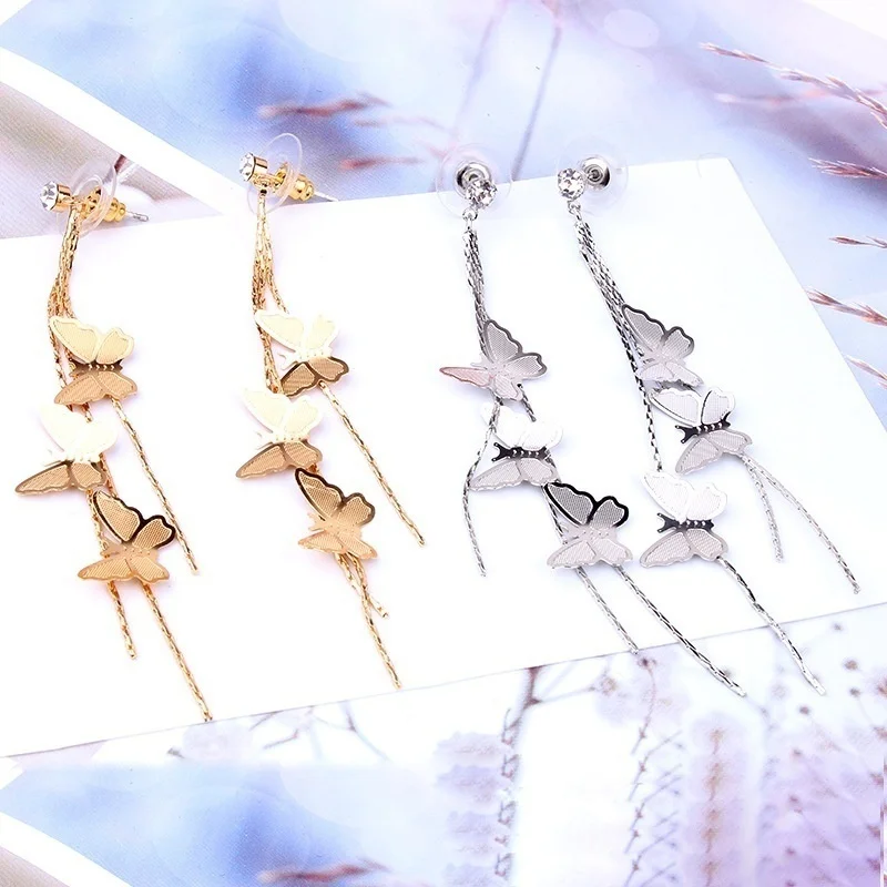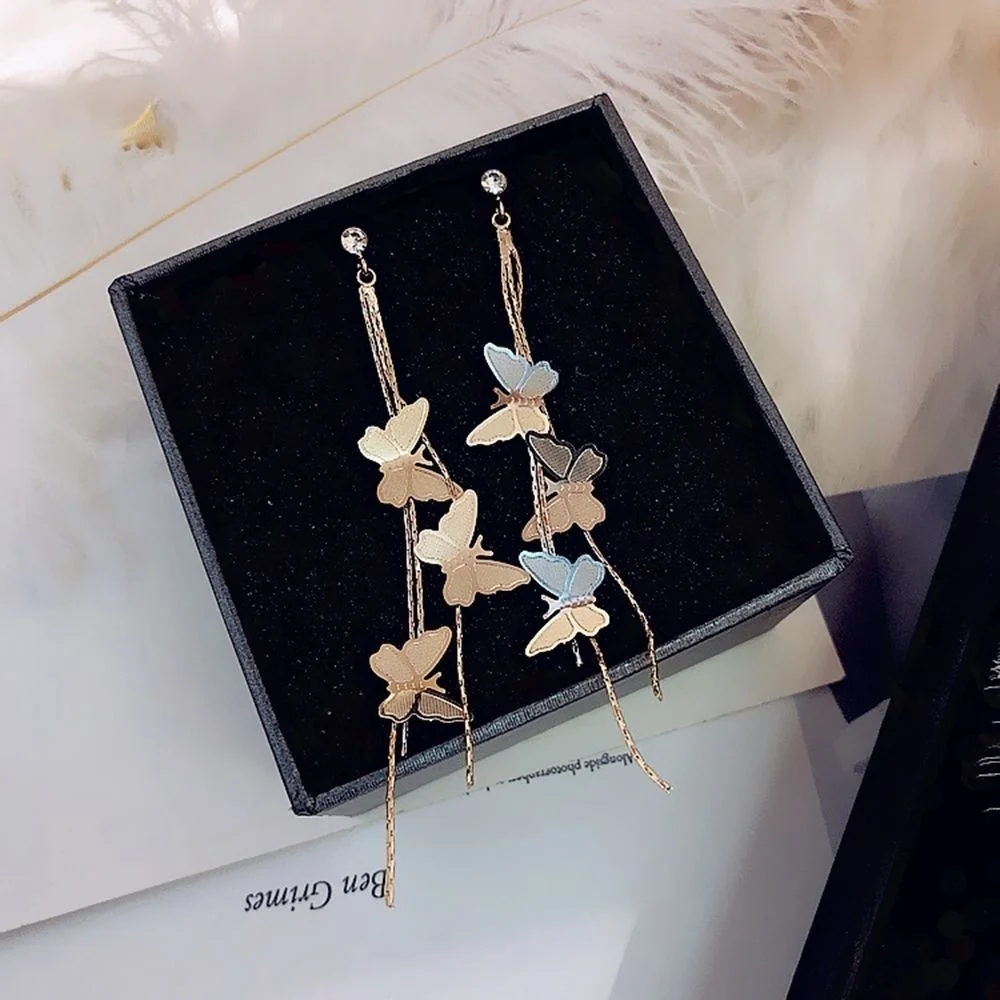 Fashion Women Jewelry Butterfly Earrings Long Tassels Eardrop Femal...