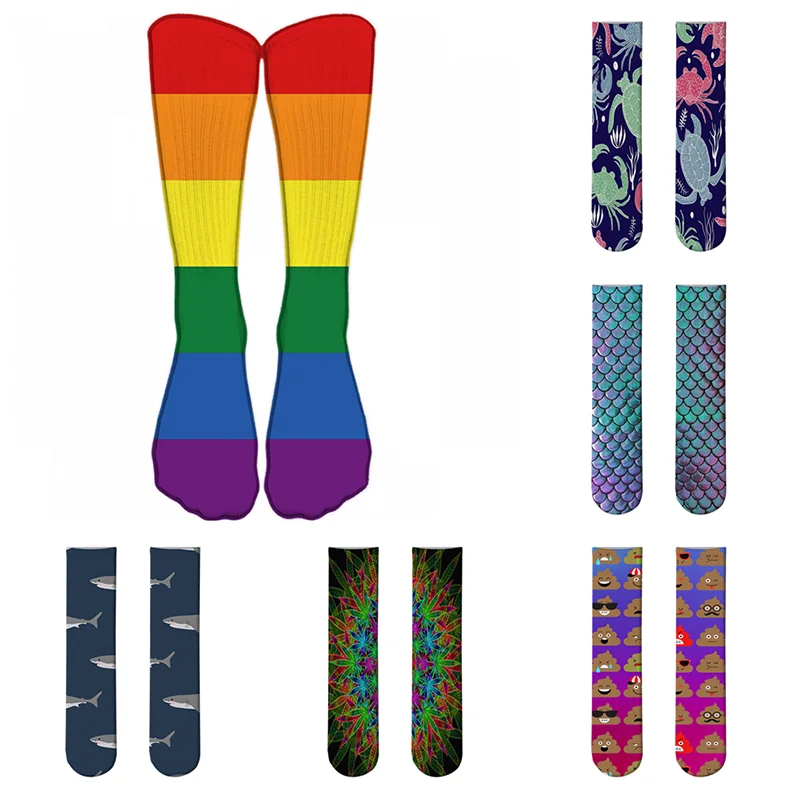 Классные носки в стиле Харадзюку для скейтборда, модные Компрессионные носки из смешанного хлопка с 3D принтом, зимние хипстерские теплые смешные женские носки унисекс