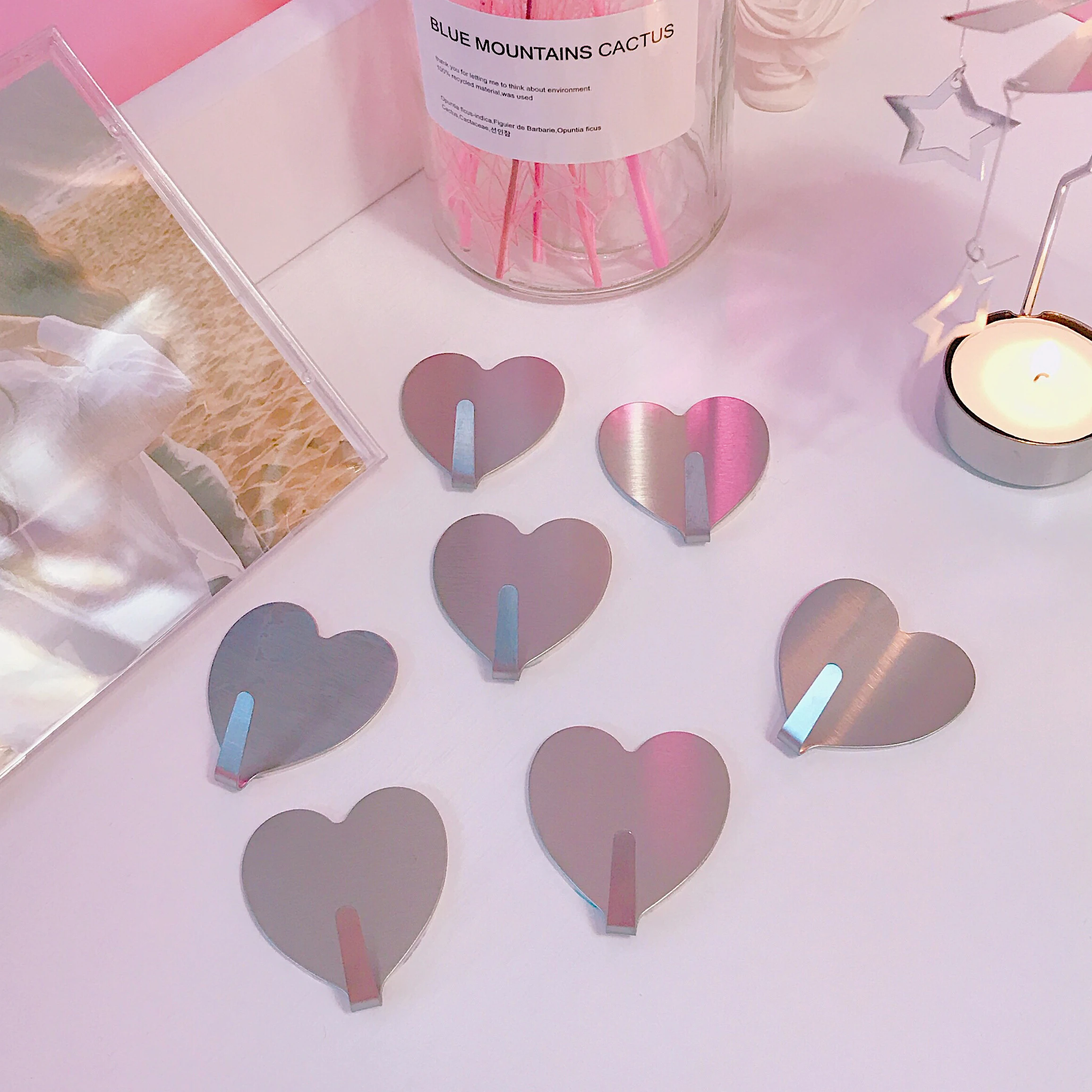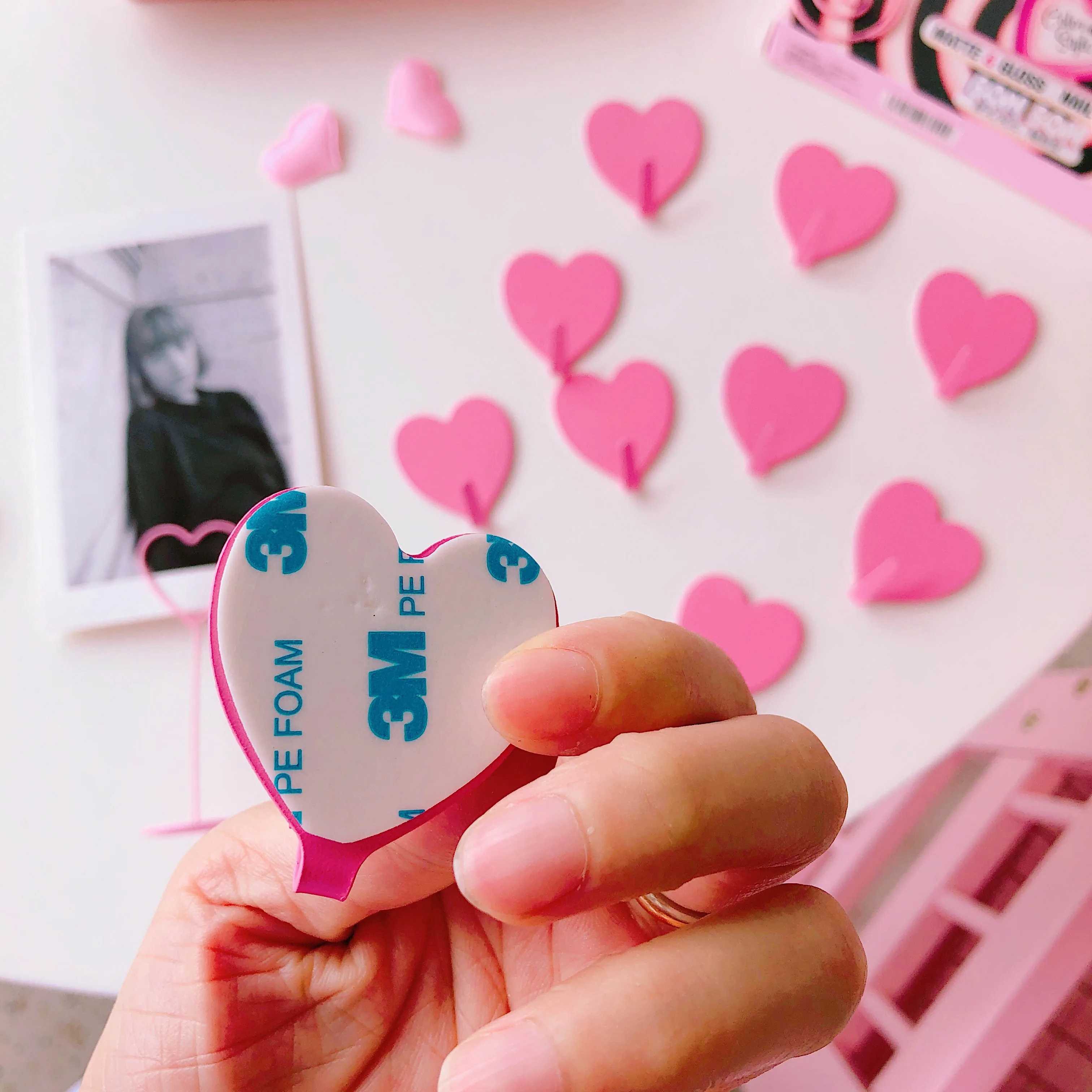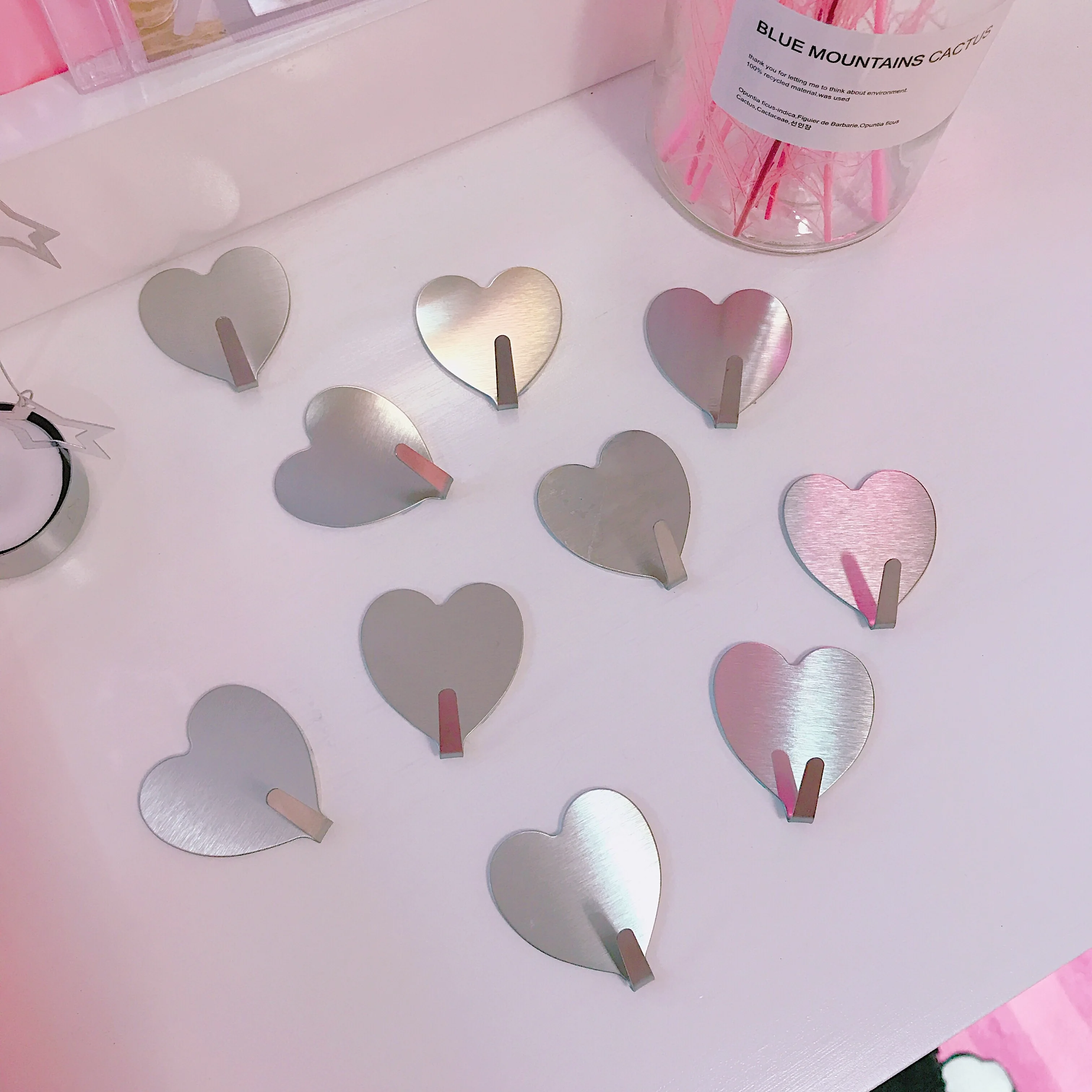 10 шт. в упаковке, корейский Серебряный крючок из нержавеющей стали, без следов, клейкий крючок для девушек, розовый, персиковый, сердце, украшение для комнаты