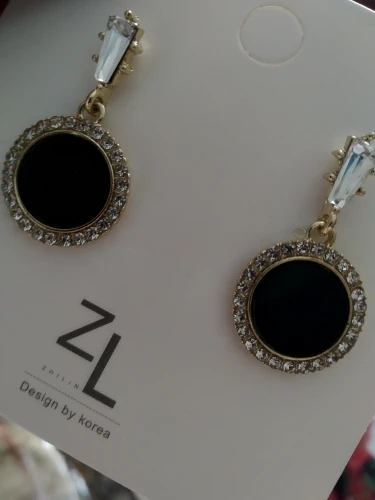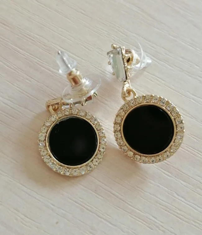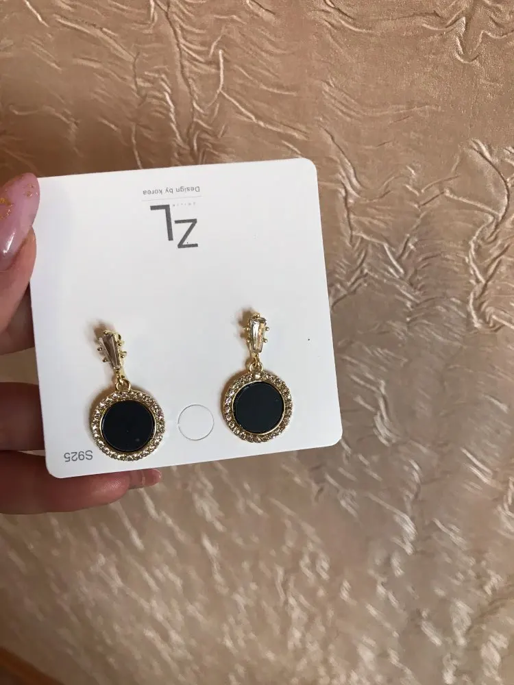 Серьги круглые женские, черные, в Корейском стиле, стразы