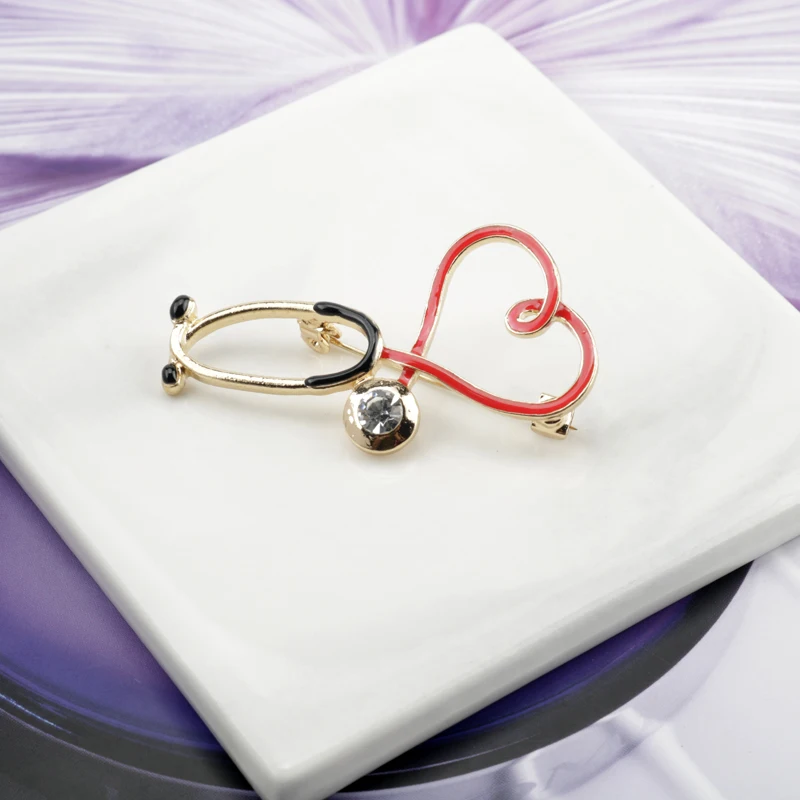 Брошь в форме стетоскопа для мужчин и женщин, брошь для воротника, с блестящими кристаллами