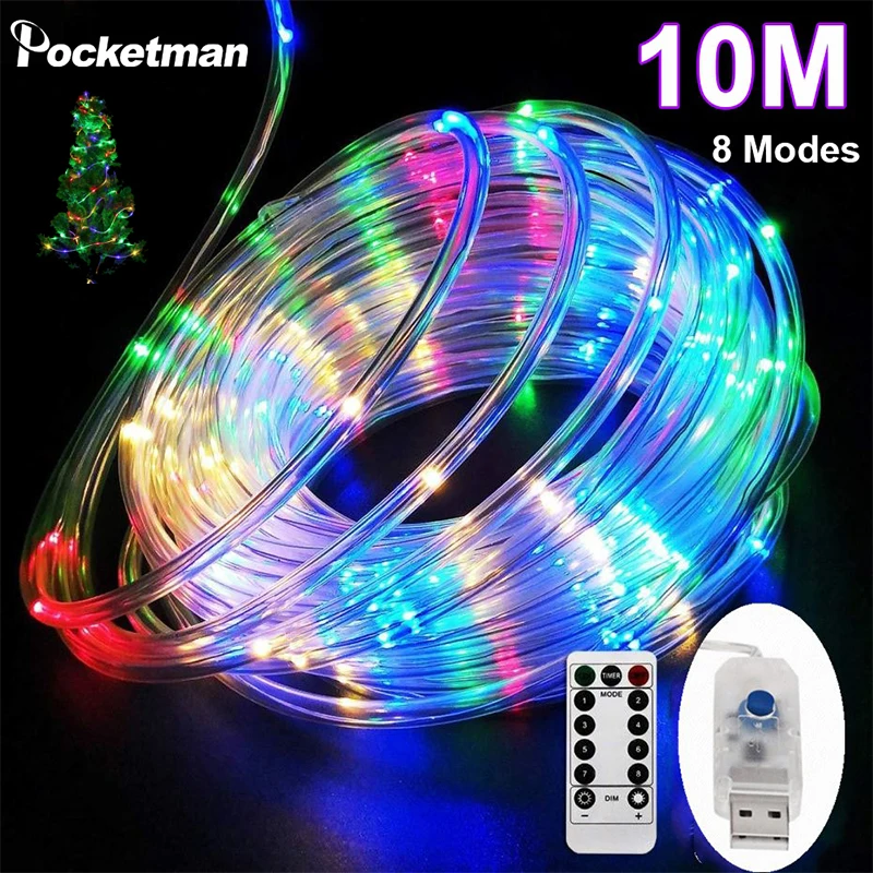 Светодиодная трубчатая гирлянда с дистанционным управлением, 8 режимов, USB RGB, комнатная уличная лампа сделай сам, декоративсветильник освещение для рождественской елки