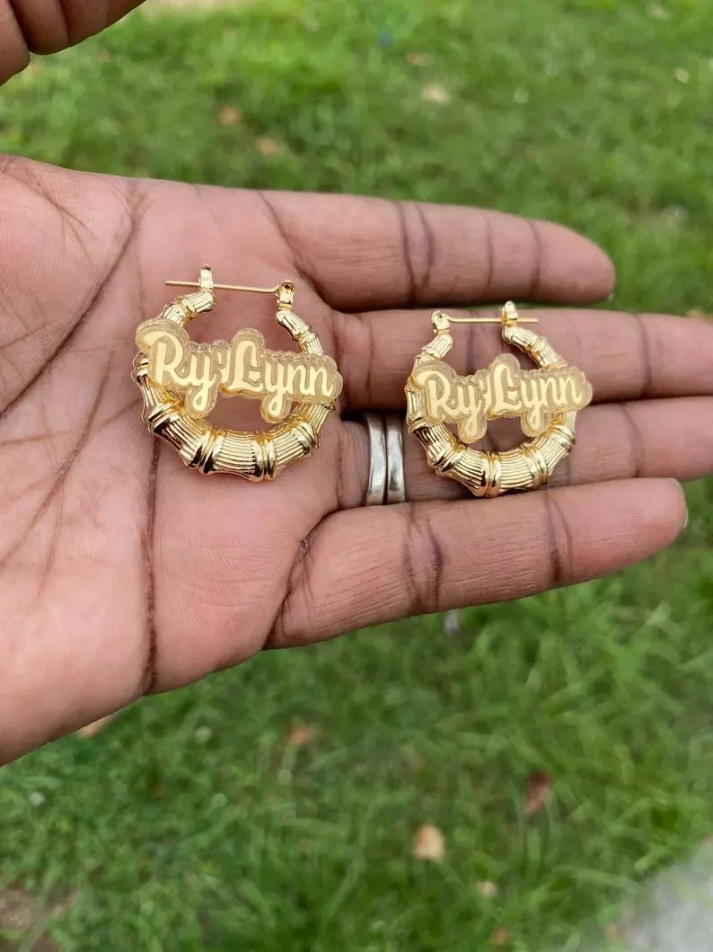 Серьги из бамбука, позолоченные, с именем на заказ, в стиле хип-хоп...