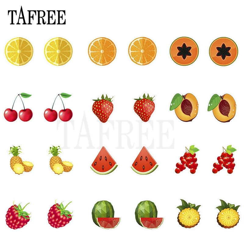 TAFREE, акриловые серьги в форме фруктов, эпоксидная смола, арбуз, клубника, заколка с украшением в виде вишен на сережках, крошечные клипсы для ушей, Женские Ювелирные изделияФотографии товара:
