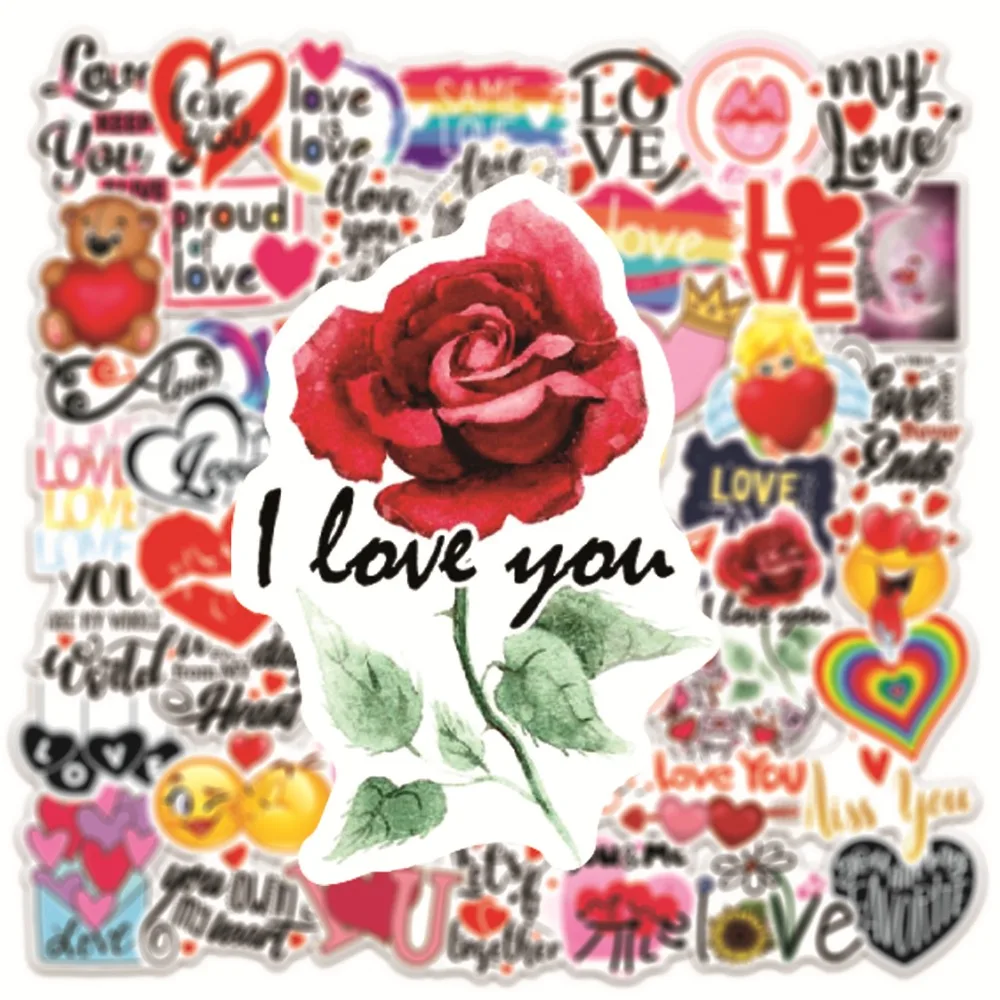 50 шт ко Дню Святого Валентина я тебя люблю винил Водонепроницаемый ПВХ Стикеры для ноутбука мотоцикл Чемодан скейтборд Автомобиль DIY граффити Стикеры s