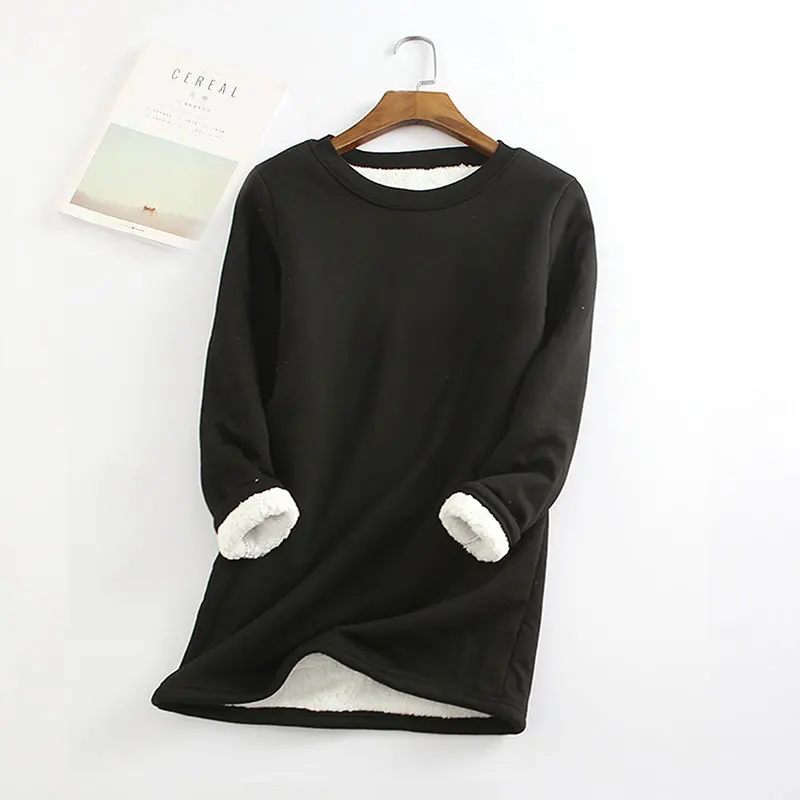 Женская зимняя Толстая плюшевая Вельветовая футболка с длинными рукавами теплая одежда из хлопка и флиса Термальность Топы Повседневная Мягкая О образным вырезом майка размера плюс S-5XL