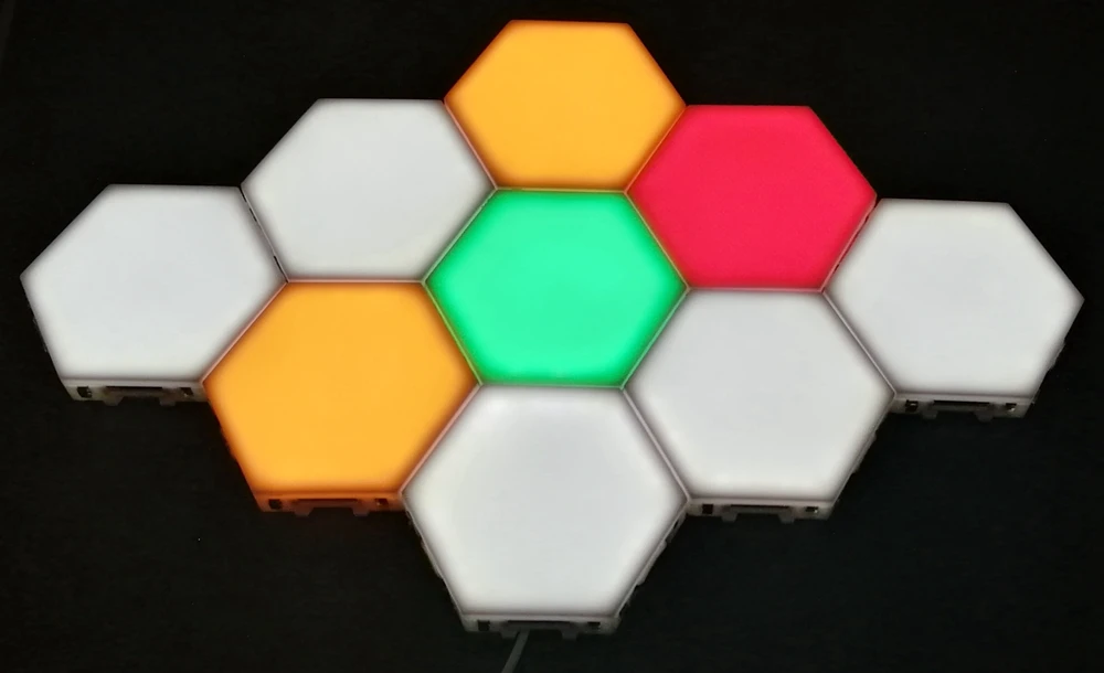Это модульный сенсорный настенный светильник. Используйте шестигранную дискету для создания любой структуры, чтобы удовлетворить ваши потребности, затем включите и выключите, прикоснувшись к ней.