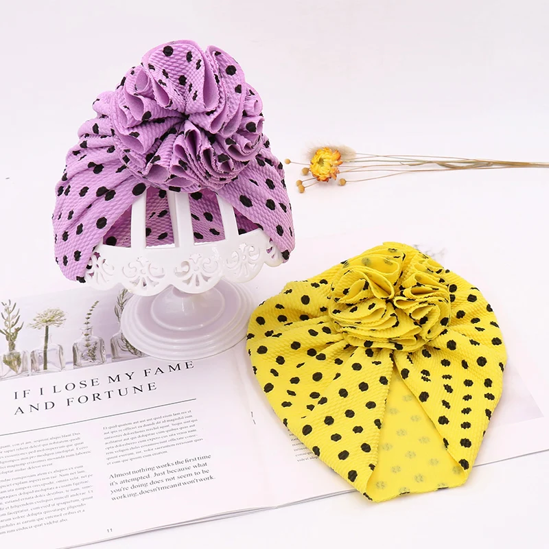 Сезон: весна-лето детские Tuban шляпа с украшение в виде цветка, два варианта-в горошек для маленьких девочек с шапочкой, для младенцев и детей ясельного возраста, детская шапочка детский чепчик головные уборы