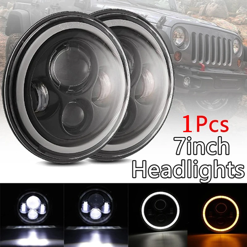 Материал: Прочный ABS и светодиодный Цвет: черный Напряжение: DC12V Срок службы: 50000 часов Размеры: (7 дюймов) 7,01 "x 7,01" x 3,07 "(178 мм x 178 мм x 78 мм) Мощность: 75 Вт/шт. Луч: светодиодный Дальний свет + светодиодный ближний свет Средняя яркость: 3200лм/шт 7 дюймовые светодиодный фары многофункциональные-ореол может быть белым или янтарным. Янтарь предназначен для сигнала поворота; Белый-Для DRL. Быстрое включение/выключение времени отклика, яркий предупреждающий эффект для повышения безопасности вождения. Защита от атмосферных воздействий, низкое энергопотребление, долговечность. Простая установка-Plug & Play. Разъем: H4