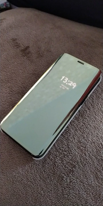 Посылка пришла очень быстро за 15 дней. Красивый чехол, прекрасно подошёл на телефон. На зеркальной крышке плёнка, пока не знаю будет ли царапаться.