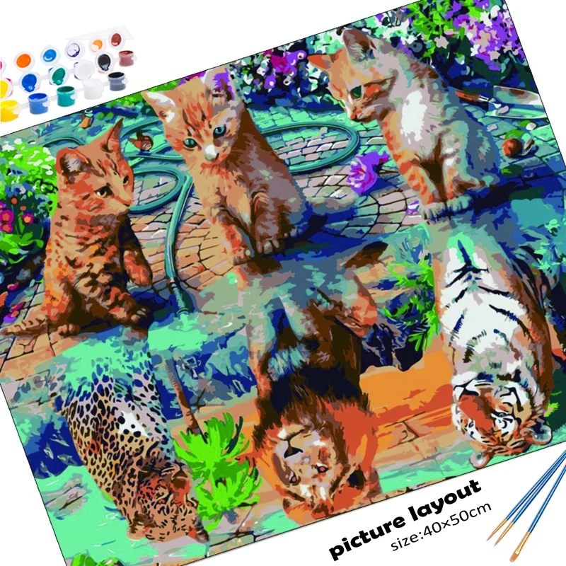 Масляная краска по номерам, животное на холсте с рамкой, акриловый ...