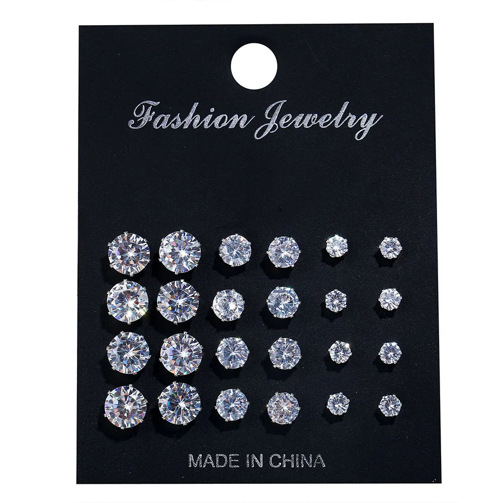 Серьги-гвоздики с кристаллами, 12 пар, элегантные женские серьги Стразы, ювелирные изделия в подарок, модные ювелирные изделия, набор 2020, оптовая продажа, серьги