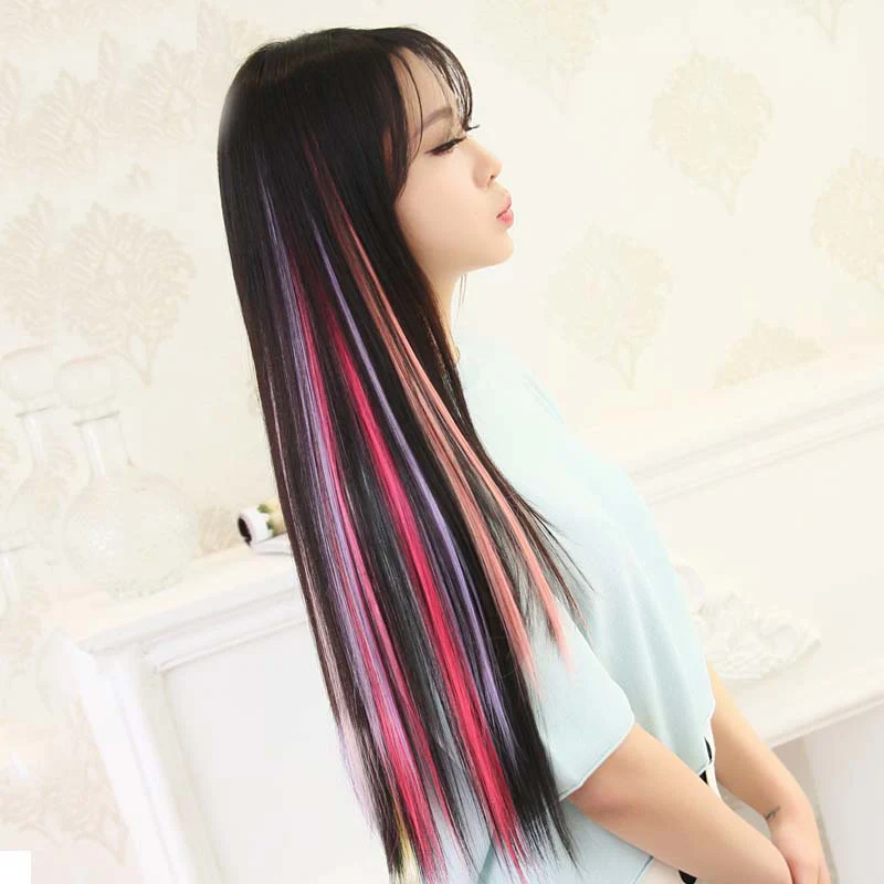 Шиньон Lupu, длинный, прямой, Радужный, цветной, термостойкий, для ...
