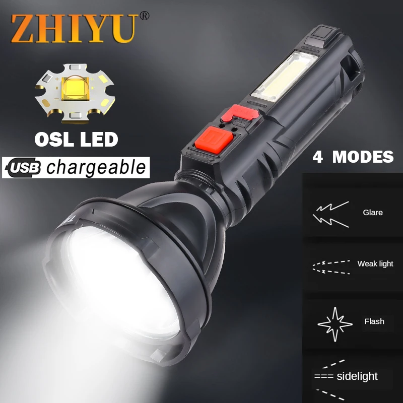 Открытый Портативный OSL светодиодный вспышка светильник с мощный удар бортовой светильник встроенный 18650 Батарея USB Перезаряжаемые светодиодный тактический вспышки светильник