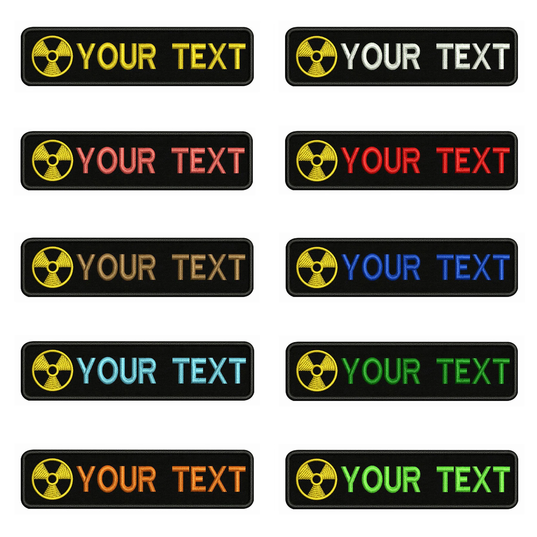 Радиационный логотип 10x2,5 см, вышивка с именем под заказ, значок в полоску, нашивки с утюгом или Velcros