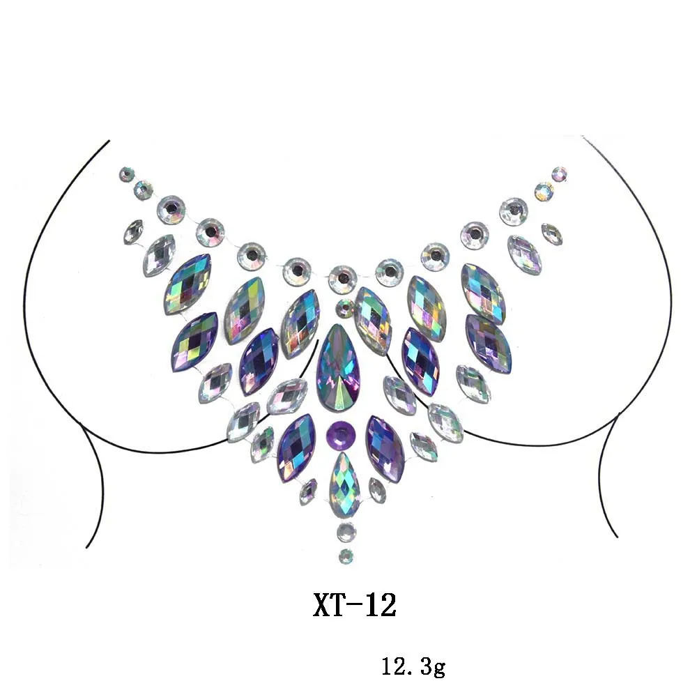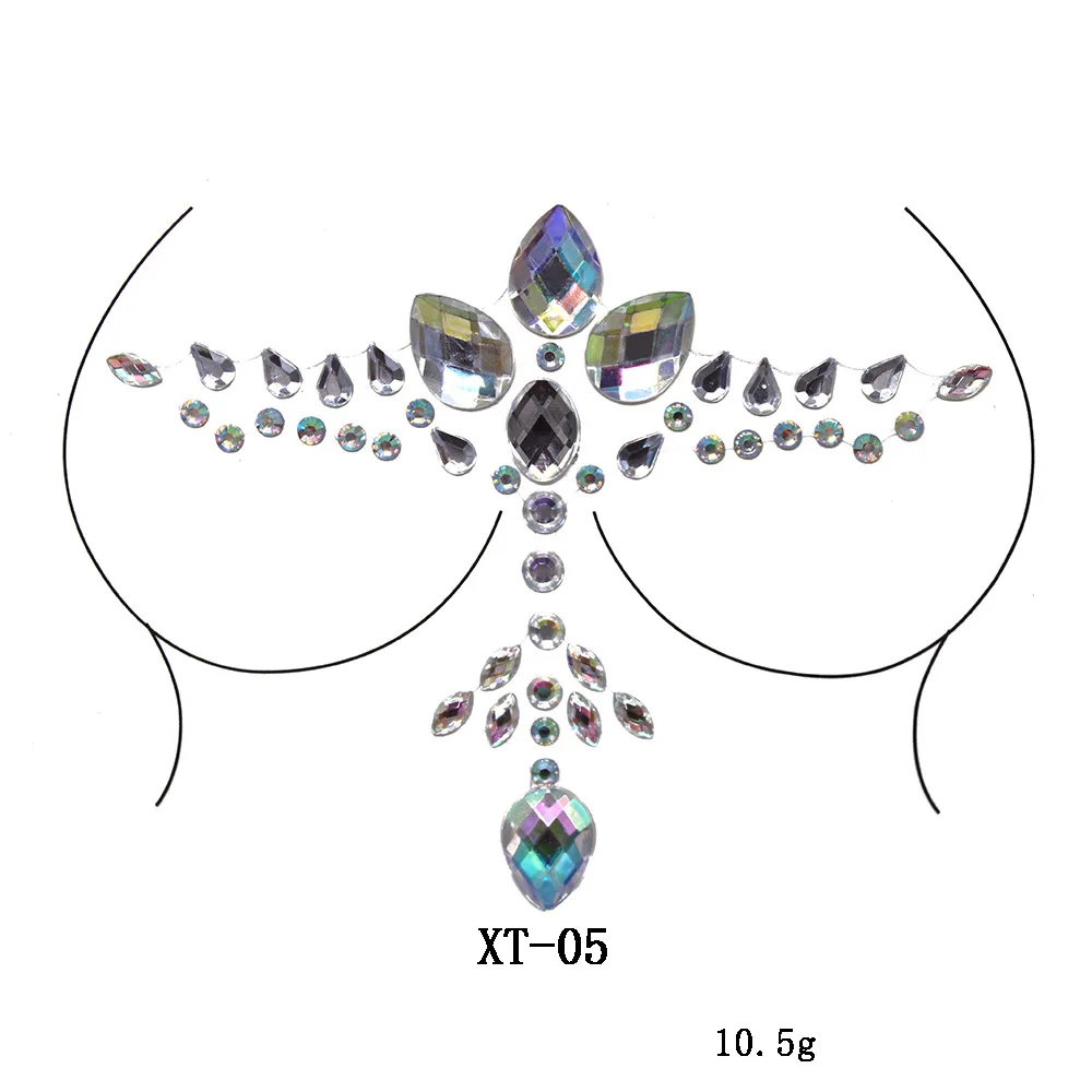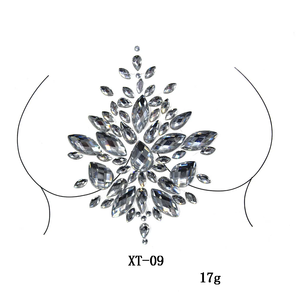 1 шт. хрустальные бусины, искусственные тату-наклейки, резиновые стразы, украшение для груди, лица, тела, блестящие акриловые украшения для вечерние, макияжа