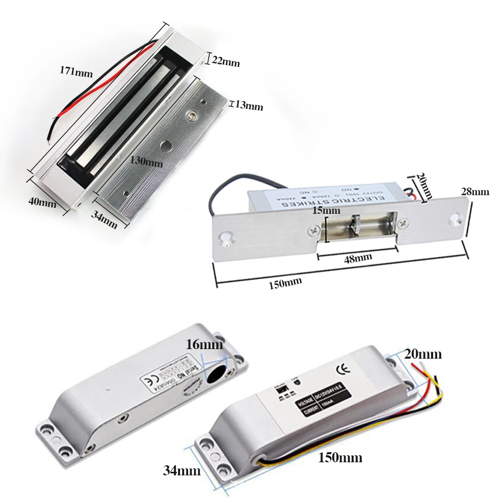 Посылка включает в себя: кнопочную панель управления доступом + блок питания + Электрический замок + дверной звонок + кнопка выхода + 10 брелоков