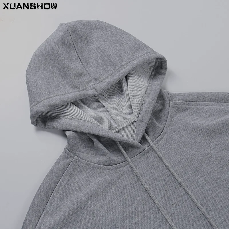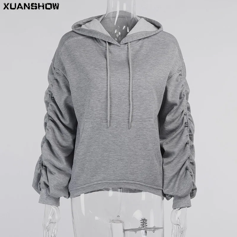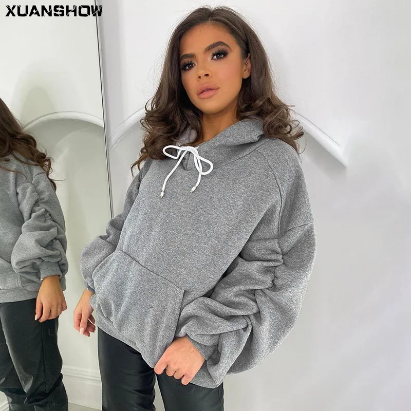 Худи XUANSHOW женское на осень-зиму, хлопковый Свободный пуловер с длинными рукавами-фонариками и карманами, повседневный свитшот с капюшоном, большие размеры