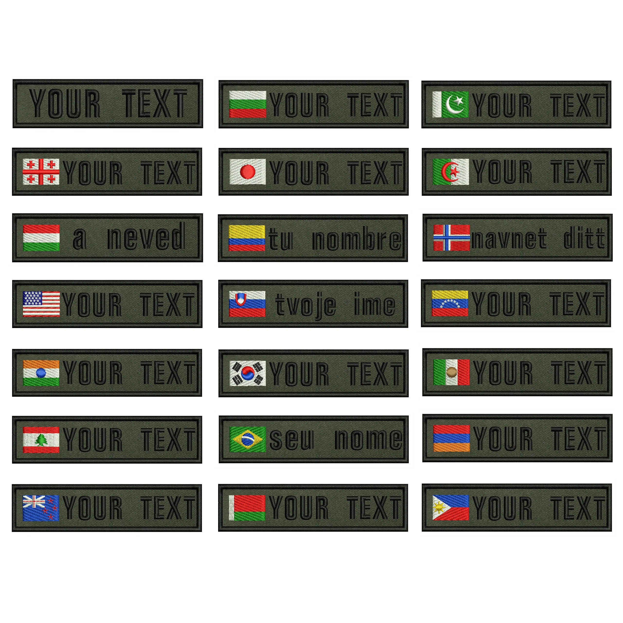 10 х2, 5 см армейский зеленый фон с национальным флагом, вышивка с именем под заказ, значок в виде строчек, нашивки с утюгом или нашивками