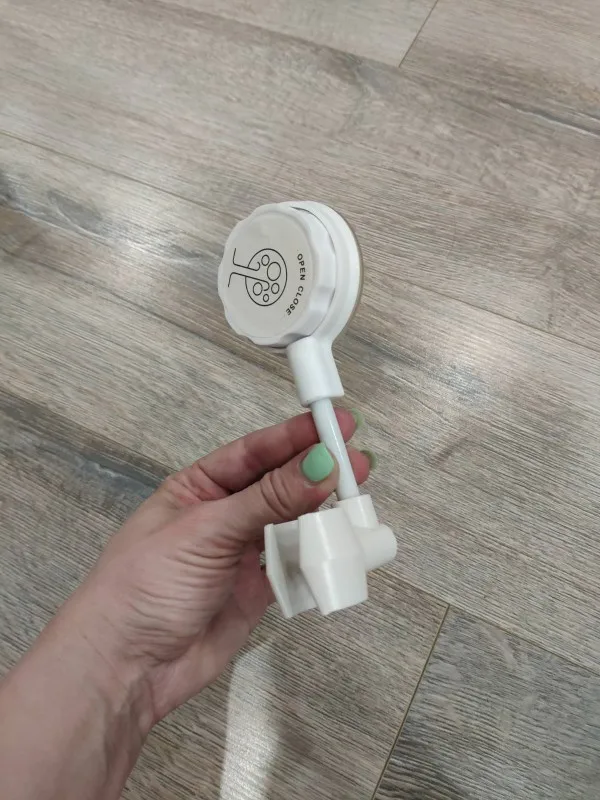 Эта замечательная вещь) И действительно работает, как показано в рекламе. Держатель для лейки пристаёт к кафелю намертво, руками не оторвешь, лейку можно теперь установить где удобно и легко поворачивать и наклонять, мне для купания ребенка просто идеально) Однозначно рекоменую и буду ещё заказывать родным