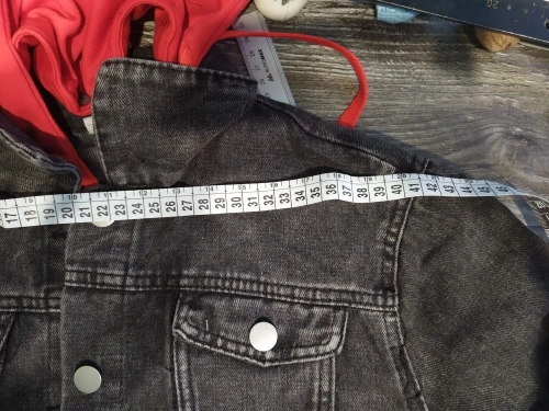 куртка тонкая , размер ОГ таблице не соответствует ! По таблице 118 см , по факту 112 см , длина соответствует , до талии ,сзади чуть длиннее , капюшон чисто декоративный ,закрывает пол головы ,если постирать и сядет и того не будет ,цвет нормальный ,на фото получился гораздо светлее ,в натуре серо - черная . на спине на поясе нет одной пуговицы на хлястике ,прийдется идти в ателье ,может где найду похожую. плечи 42 см