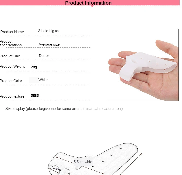1 пара, силиконовый разделитель для большого пальца стопы, с 3 отве...