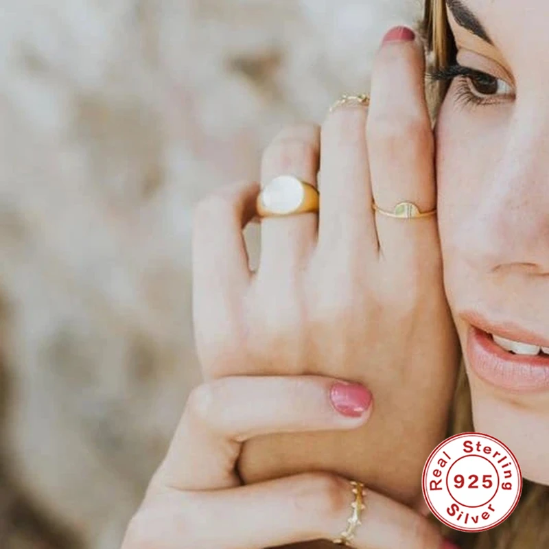 Автоклав в европейском и американском стиле тренд 925 стерлингового серебра INS простые геометрические серьги кольцо для женщин Золотой Цвет Леди Кольца Ювелирные изделия anillos
