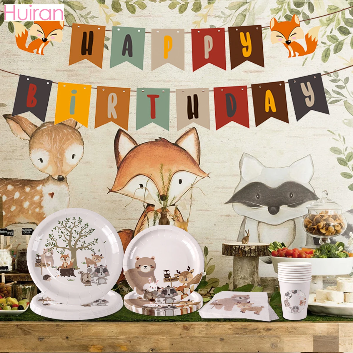 HUIRAN, посуда для леса, животные, джунгли, вечерние, для сафари, для дня рождения, вечерние, для детей, для мальчиков, животные, лес, на день рождения, вечерние принадлежности