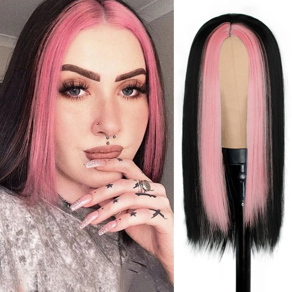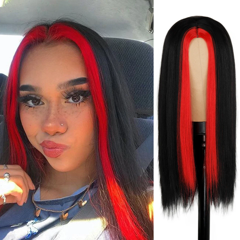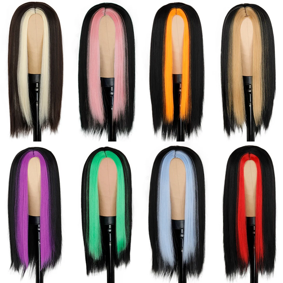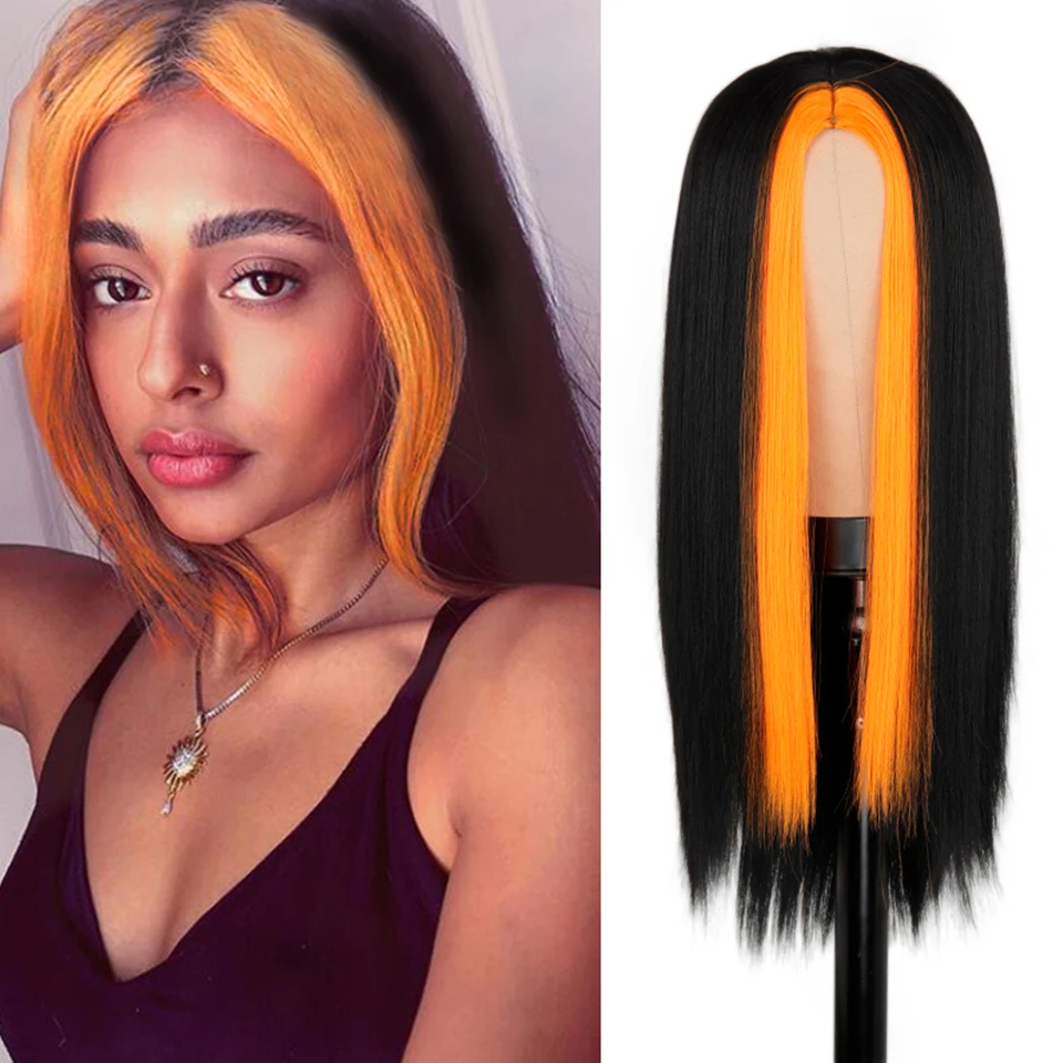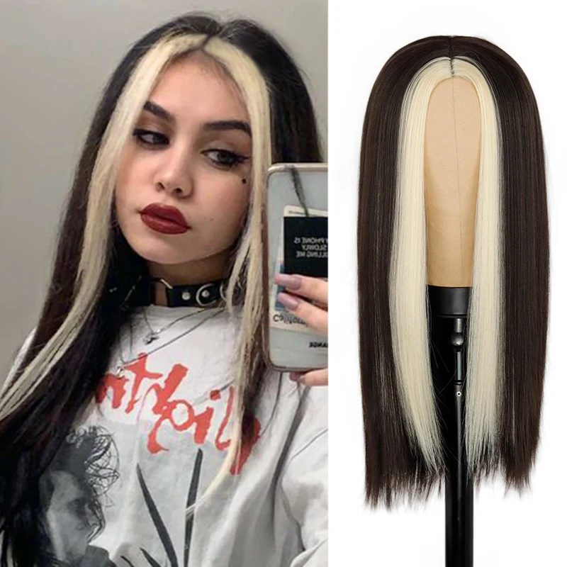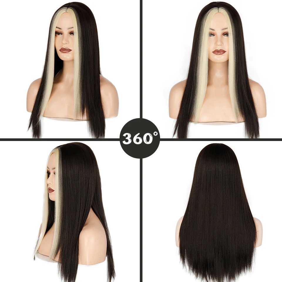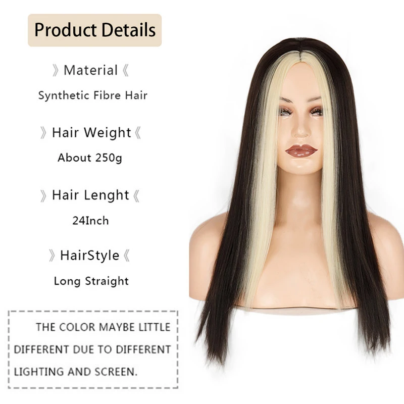 Синтетический парик, модный длинный черный парик с прямыми волосами, синтетический парик со светлыми волосами для девочек с париком для косплея