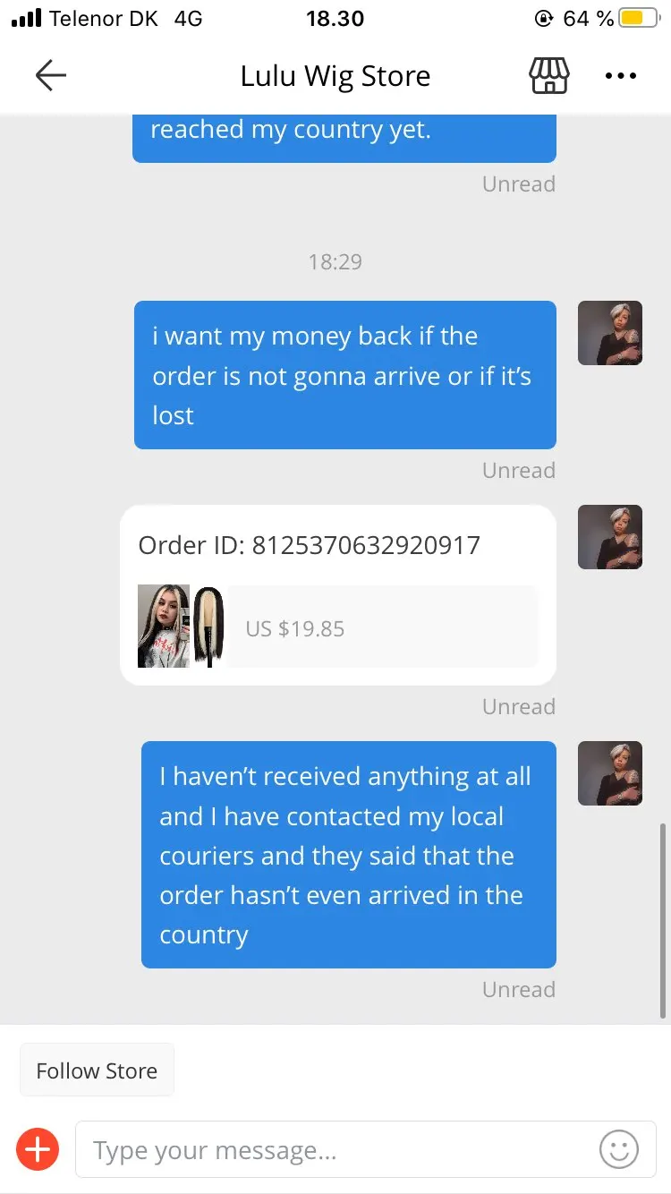 На AliExpress сказали, что товар был дважды доставлен в мою страну, но я связался с местной компанией, и они уведомили меня о том, что они не получили мой товар. Я попробовал связаться с продавцом еще раз, чтобы спросить, что происходит с моим заказом, так как я его не получил, но он был проверен как получил. Я либо хочу вернуть свои деньги, либо хочу получить заказ и связаться с ним.