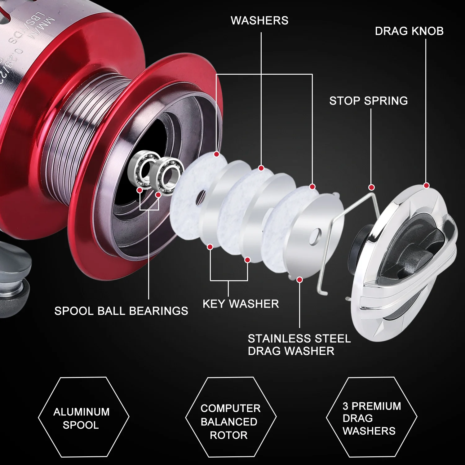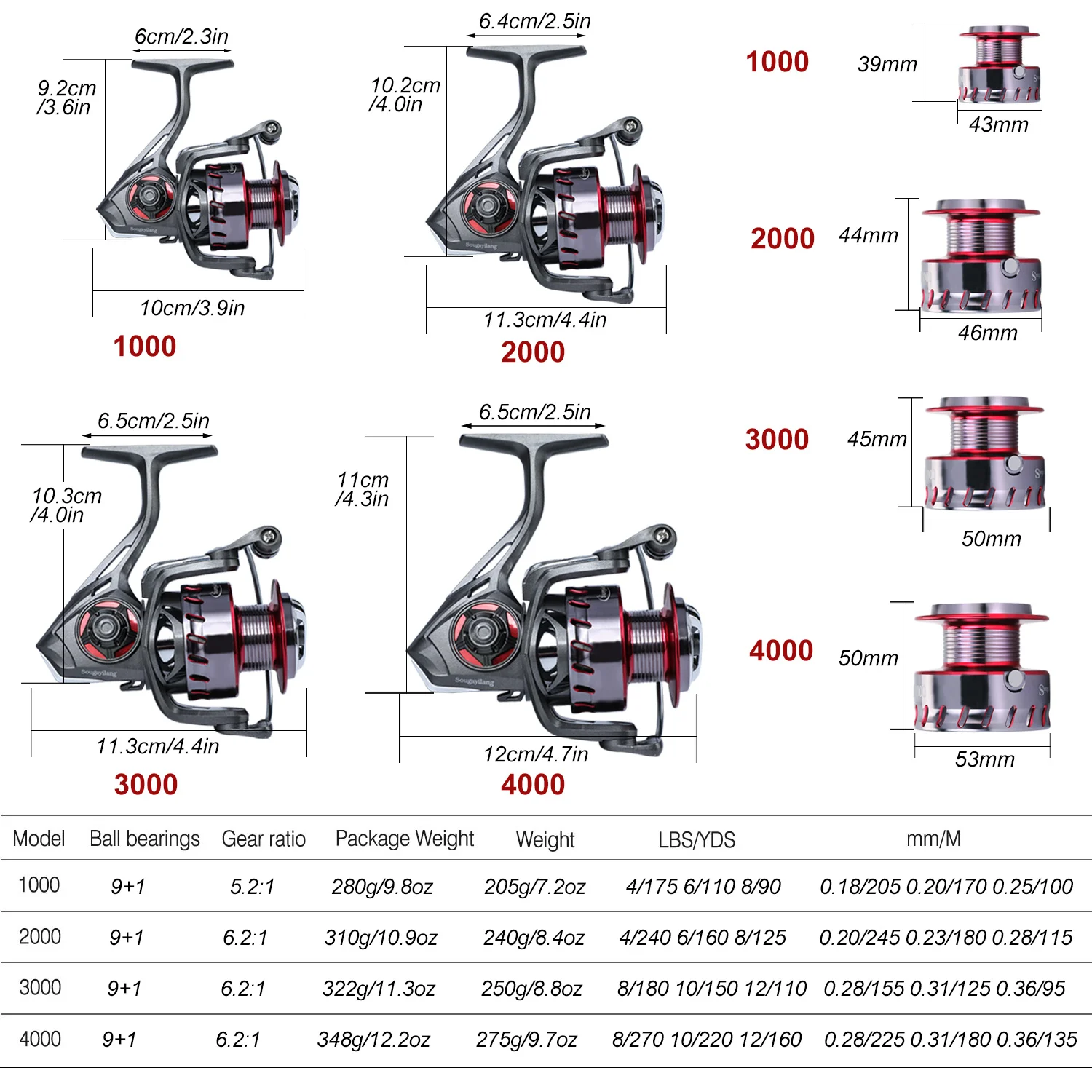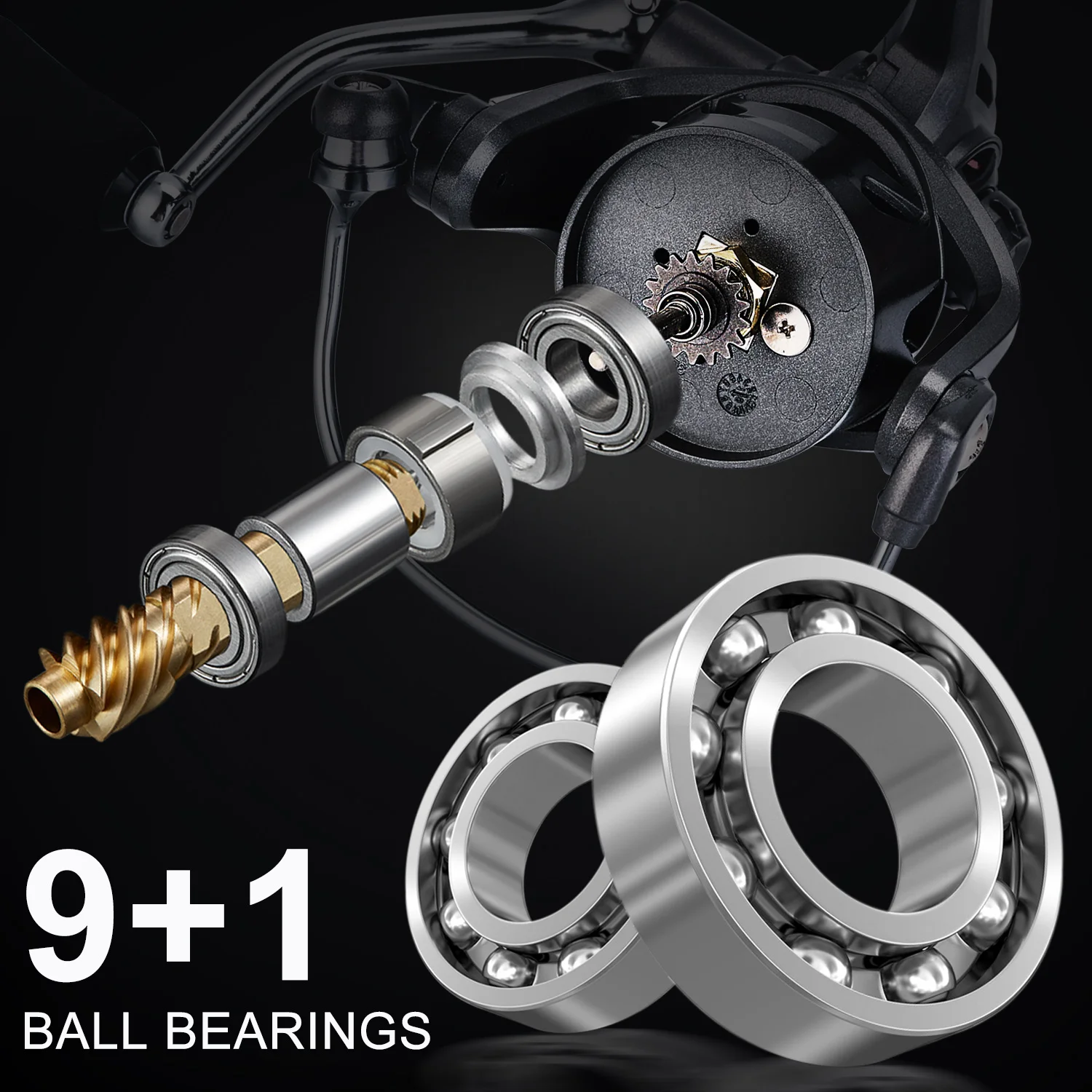 9 шарикоподшипники из нержавеющей стали + 1 анти-обратный шариковый подшипник обеспечивают плавное действие в рыбалке.
