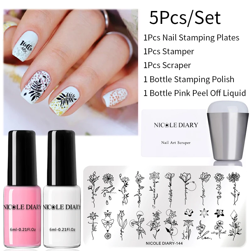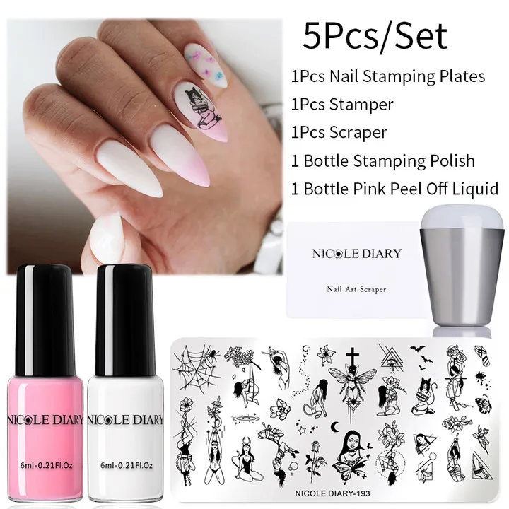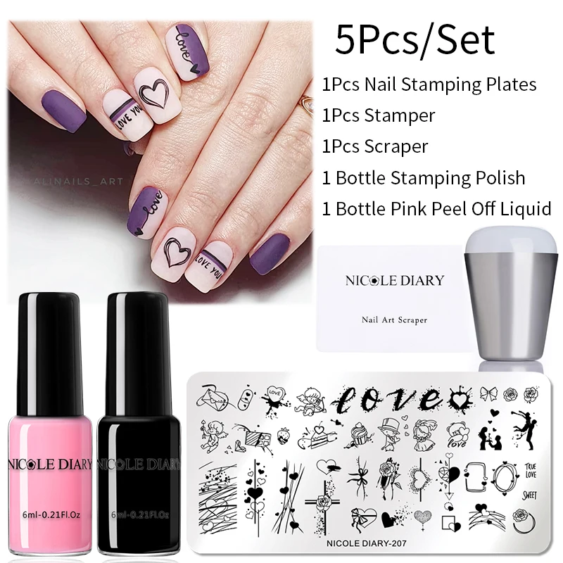 5 шт., трафареты NICOLE DIARY для стемпинга ногтей, для девочек