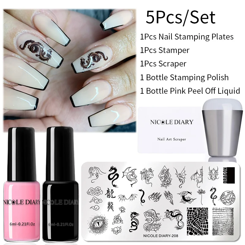 Трафареты NICOLE DIAR для стемпинга ногтей с рисунком дракона, змея...