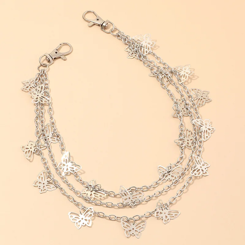Цепочка в стиле панк-рок унисекс для брюк с бабочкой, трехслойные м...