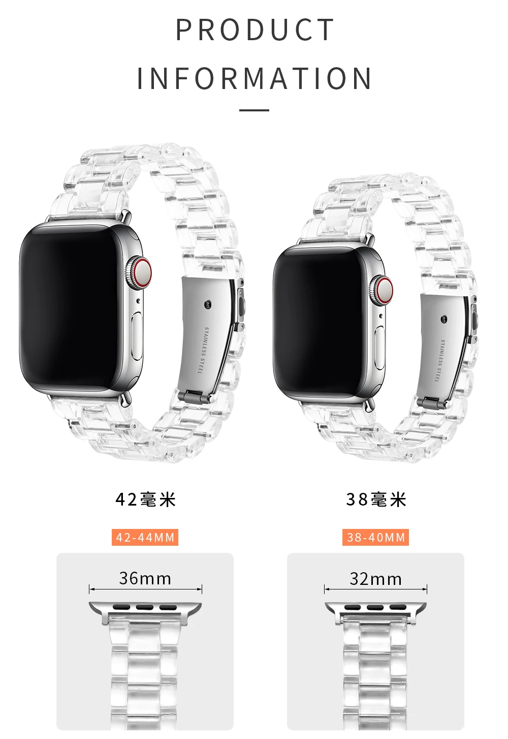 Ремешок для часов Apple Watch Band Series 6 SE 5 4 321, прозрачный браслет для Iwatch 38 мм 40 мм 42 мм 44 мм, аксессуары для часов