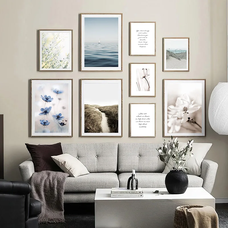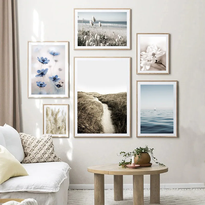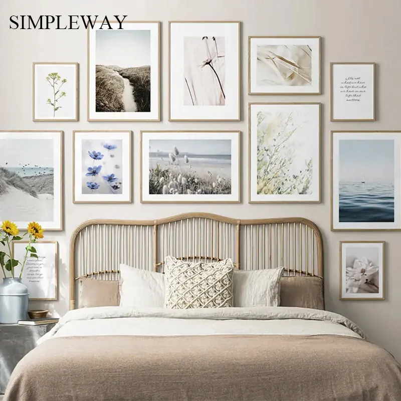 Богемное настенное искусство океан трава природный пейзаж плакат и ...