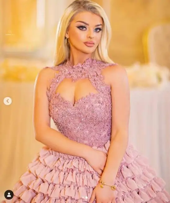 Женское бальное платье принцессы, розовое кружевное платье без рукавов, Многоярусное вечернее платье для выпускного вечера, официальная одежда в саудовской аравии