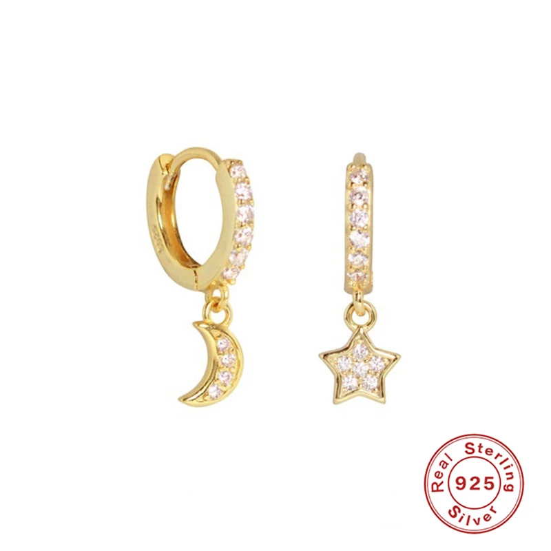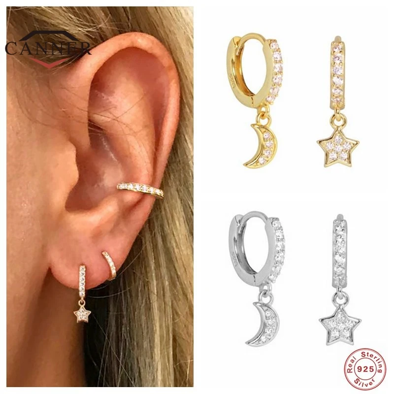 Женские серьги-кольца CANNER, серьги из стерлингового серебра 100% пробы с Луной и звездой, Золотой пирсинг, ювелирные украшения