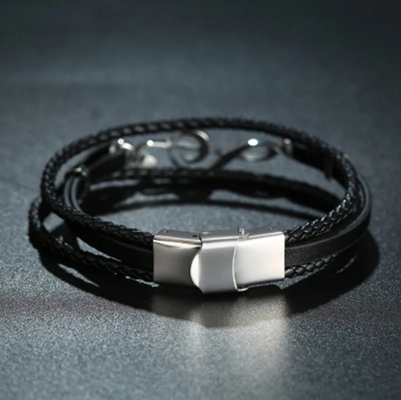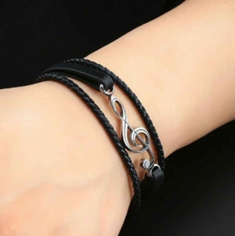 Мужской кожаный браслет, в стиле панк, с нотами из нержавеющей стали