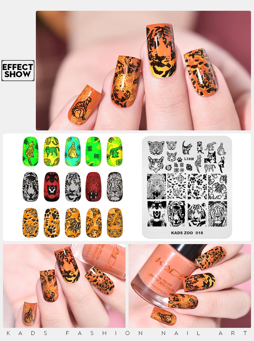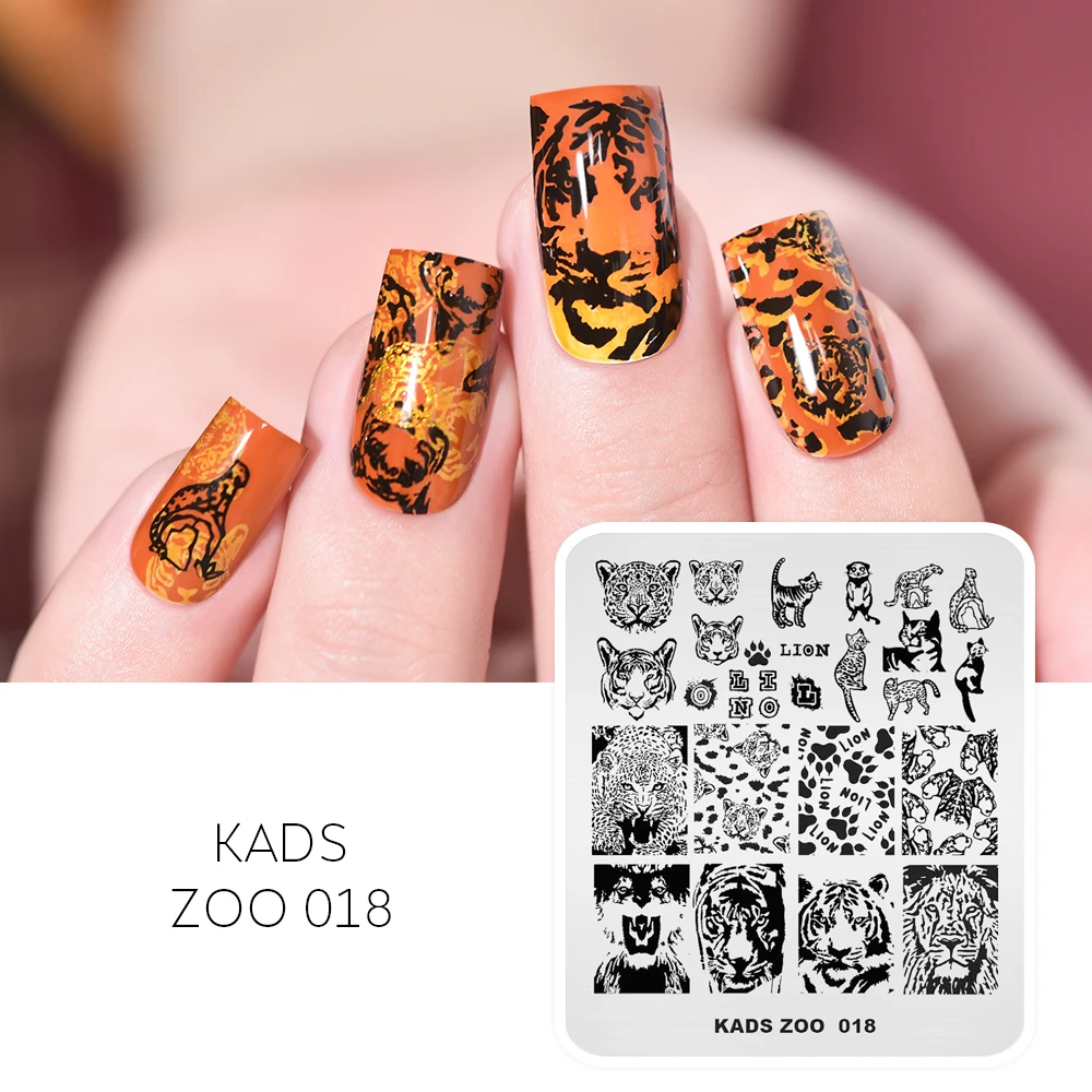 Шаблон для дизайна ногтей KADS Zoo 018, трафаретная пластина с леопардовым принтом льва тигра, трафаретная пластина