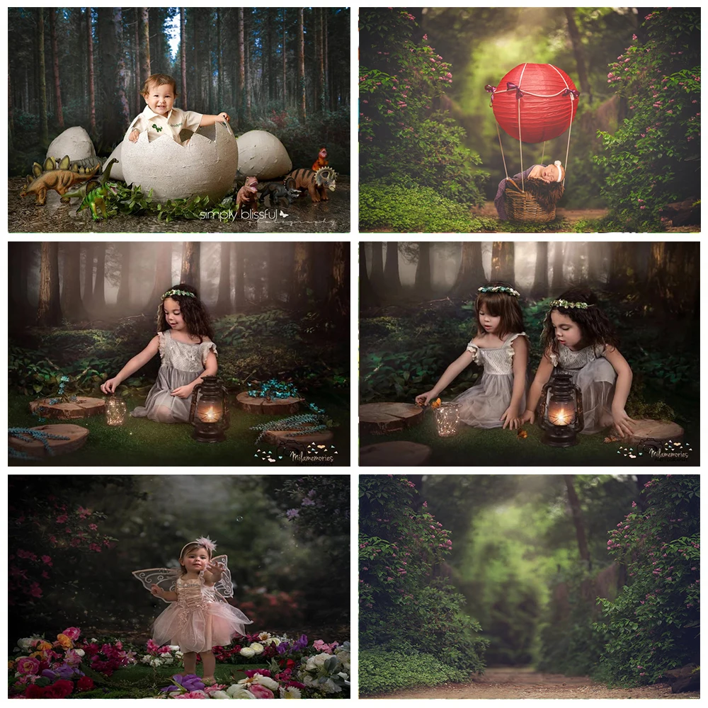 Фон для фотосъемки Mehofond Сказочный Зеленый ЛЕС ДЕРЕВЬЯ пастбище ...